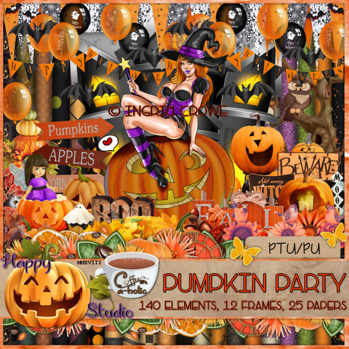 140 elements, 12 frames, 25 papers in this kit full of fun pumpkins and lots of party elements. Non AI Tube included.