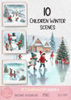 10 winter scenes featuring children. Instant download for sublimation and print. Ideal for greetings cards, Christmas ornaments, clothing, cushions, prints