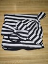 Black and white striped swaddler set. This set comes with a bowtie with material that with fit snug but won't hurt baby very stretchy material a cap and a swaddler blanket.