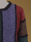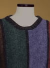 This easy sweater is worked from side-to-side – no intarsia needed for the stripes! The sleeves are picked up and knit down from the armholes. And there is a coordinating children’s pullover pattern (#148) so you and your child can match!