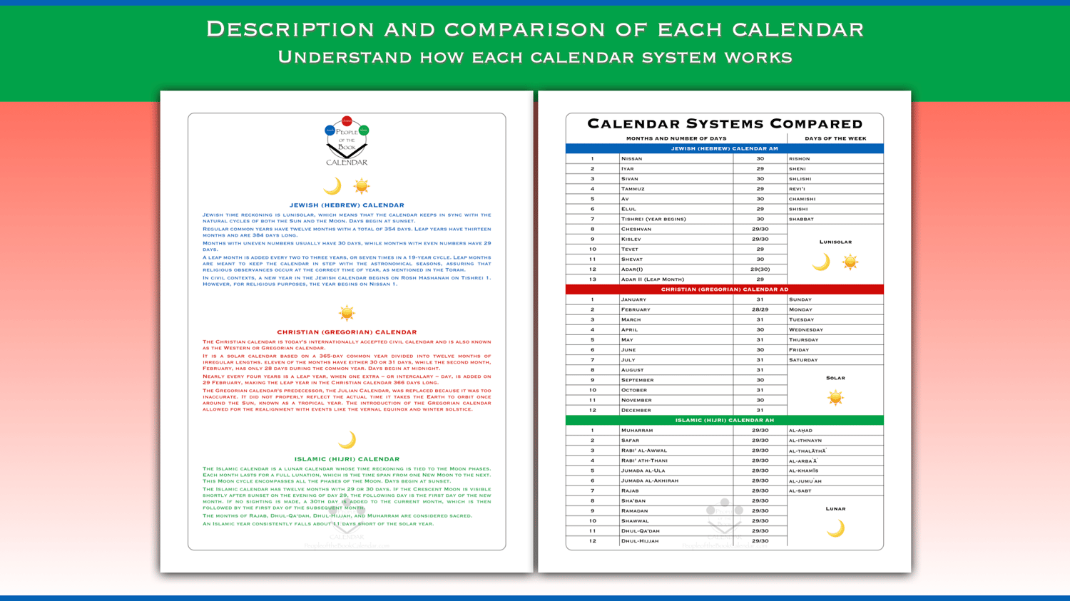 Jewish, Christian and Islamic calendars combined into one. I call it the People of the Book Calendar, referring to the "people of scripture", specifically that of the three Abrahamic monotheistic religions.