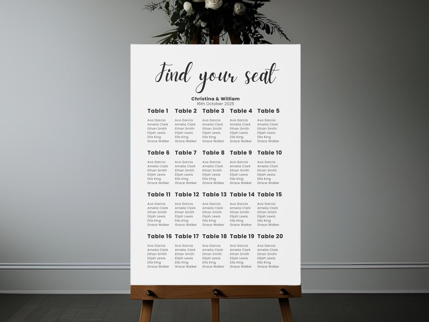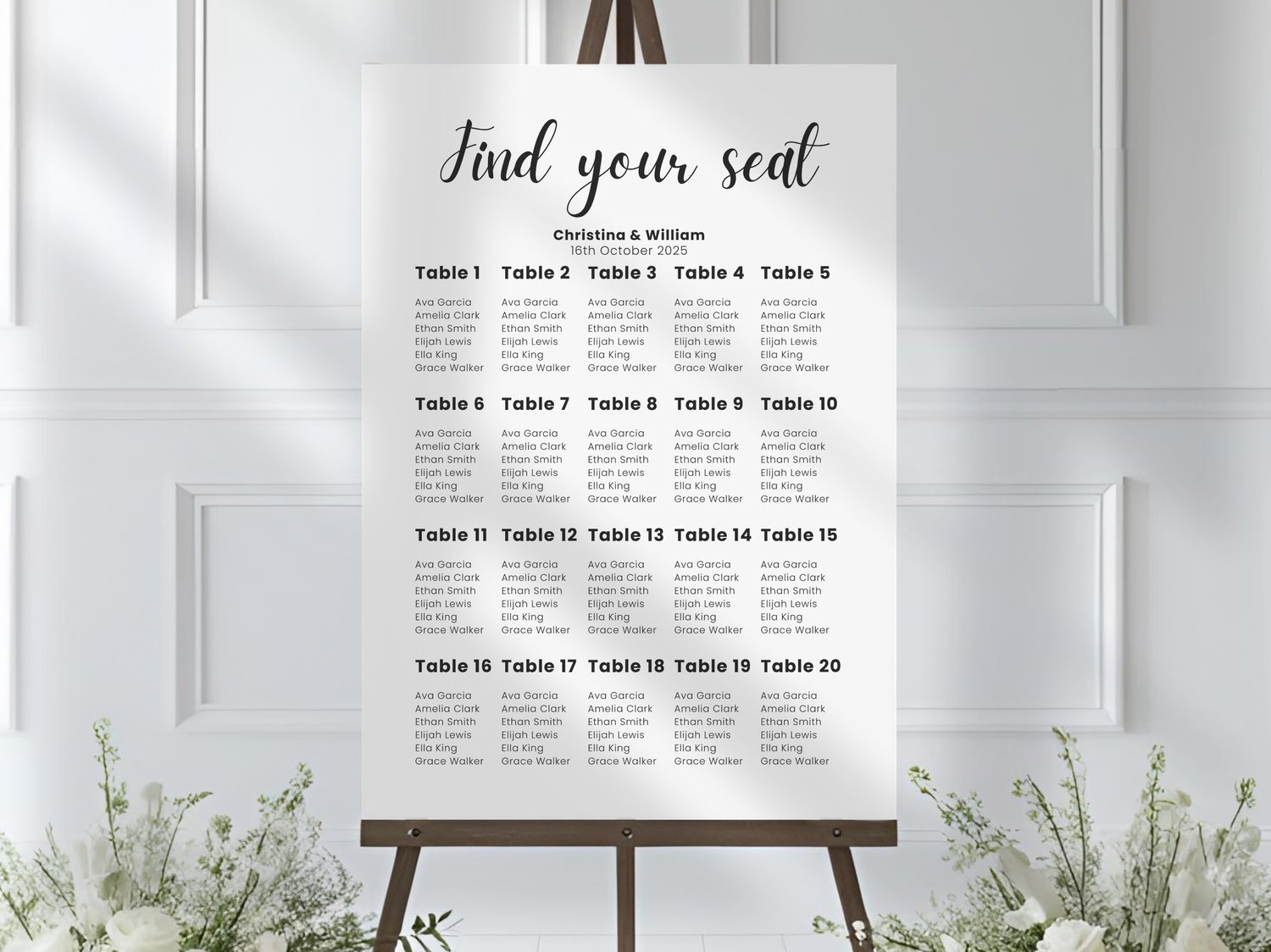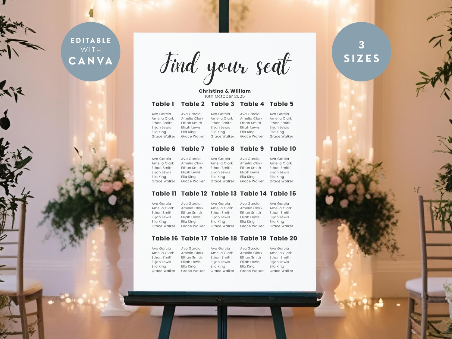 Modern Wedding Seating Chart Template Canva Editable Sign Clean Modern Design Printable Table Assignment Guest Seating Plan Reception 002