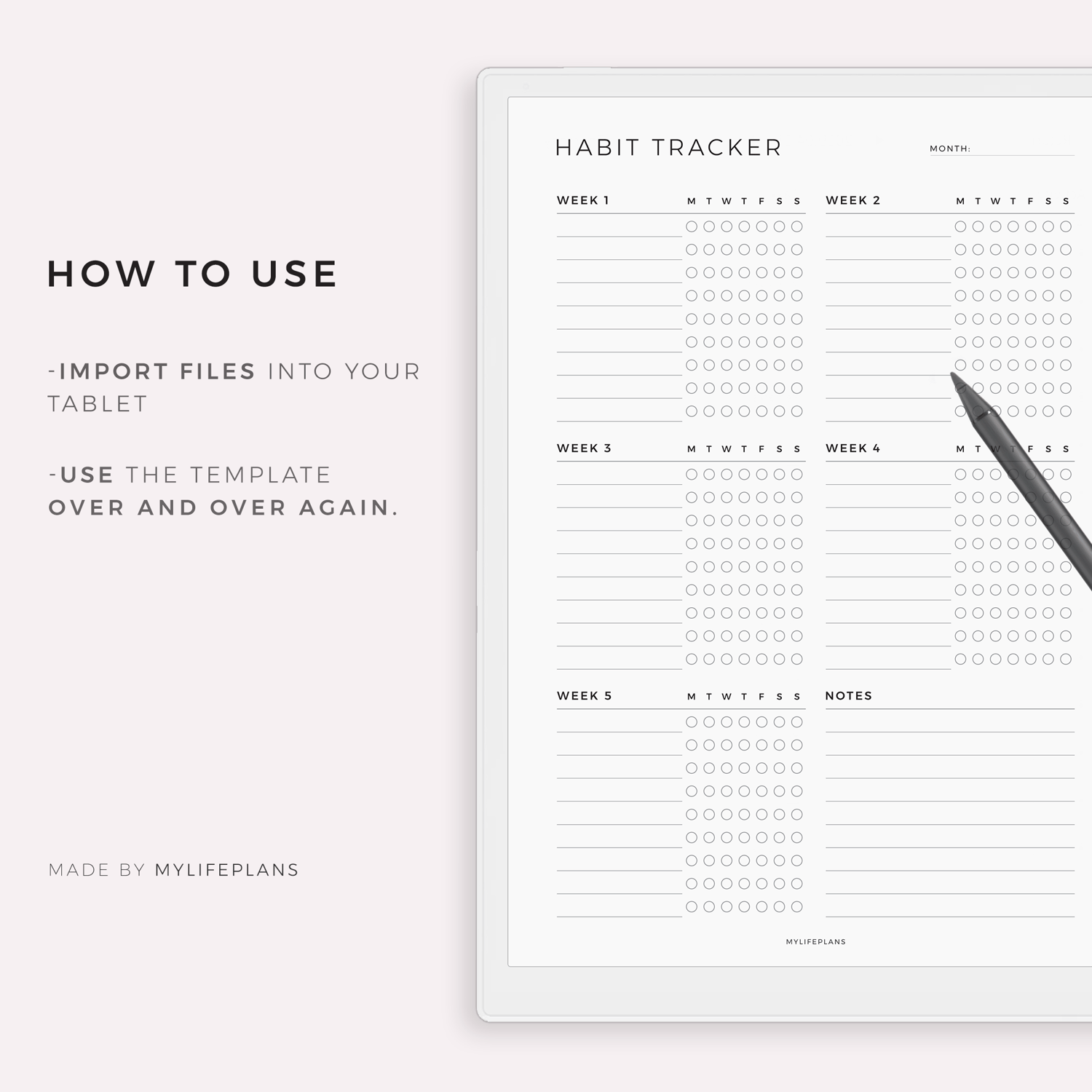 Monthly Habit Tracker Template for Remarkable, Supernote, Kindle Scribe, Boox, Kobo