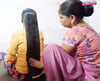 Evening mood friends Smelling& kissinghair after oilinghair/combing sleek