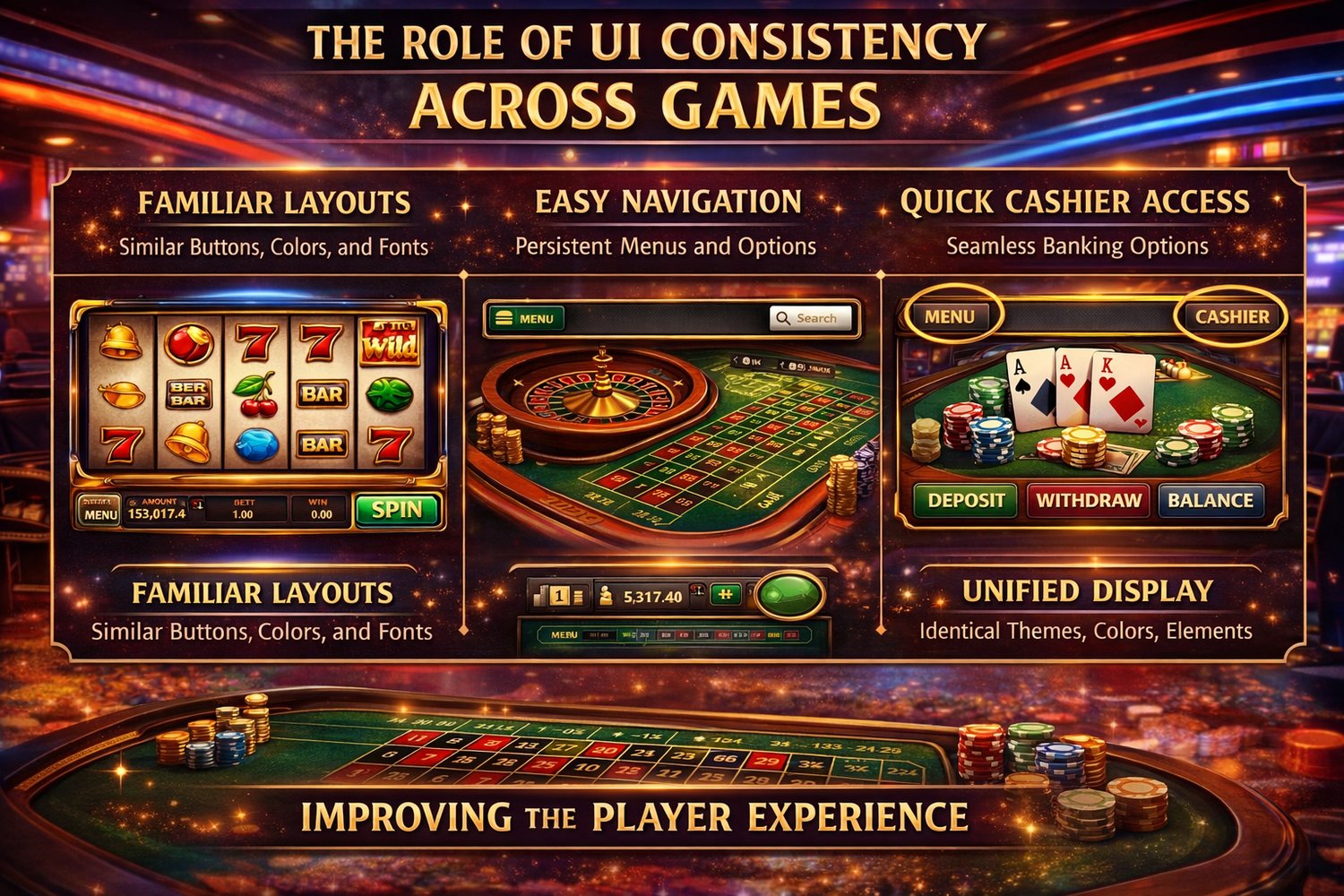 게임 전반에 걸친 UI 일관성은 플레이어 경험을 결정짓는 핵심 요소 중 하나입니다. 사용자가 여러 게임을 오가며 플레이할 때 인터페이스가 일정하게 유지되면 학습 부담이 줄어들고, 자연스럽고 편안한 환경 속에서 게임에 집중할 수 있습니다. 이러한 일관성은 단순한 디자인 요소를 넘어 플랫폼에 대한 신뢰를 형성하는 중요한 기반이 됩니다.
