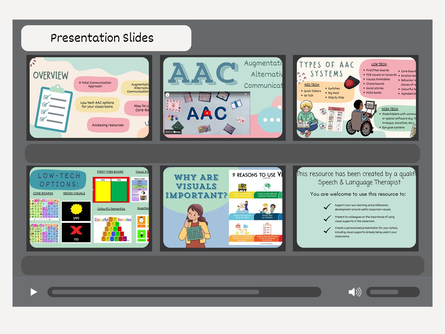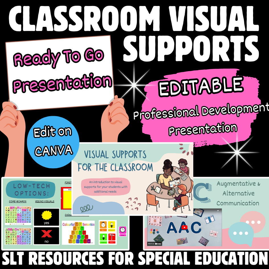 This ready-made presentation, created by a qualified Speech & Language Therapist is packed with practical visual support ideas for the classroom. Ideal for professional development, it can be used as is or customized to fit your needs.
