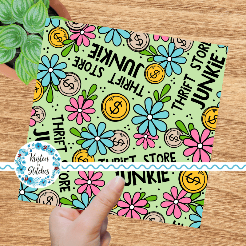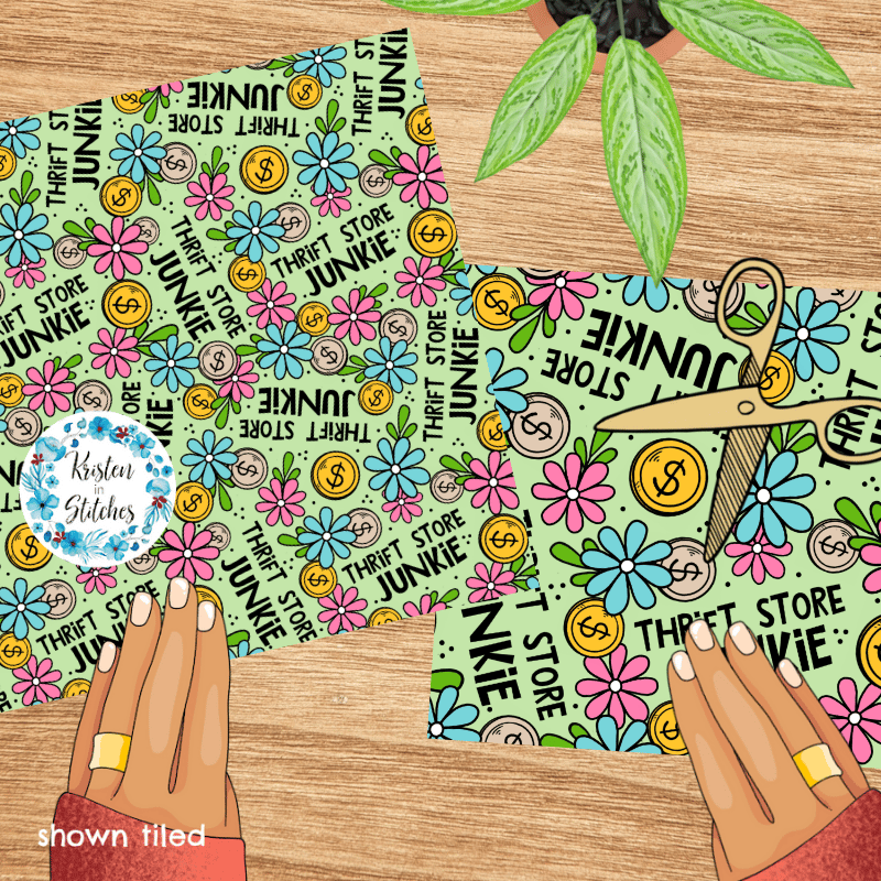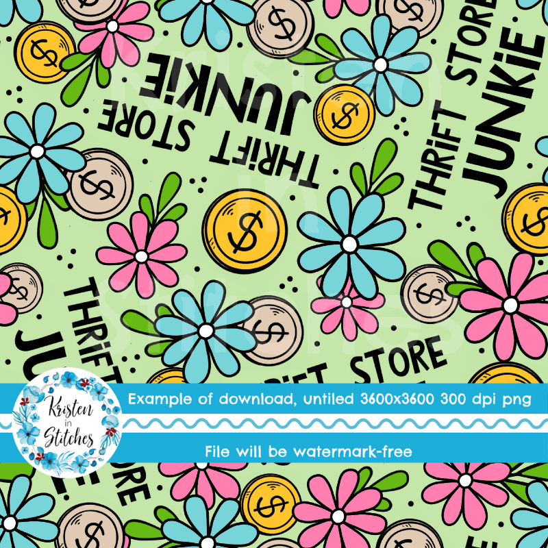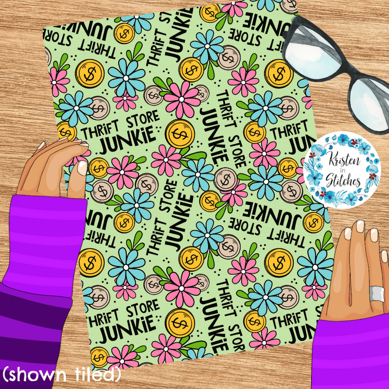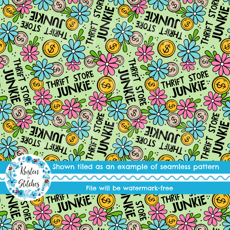 Thrift Store Junkie seamless pattern, Perfect for the person who loves thrift shopping, second hand treasure hunting, etc.