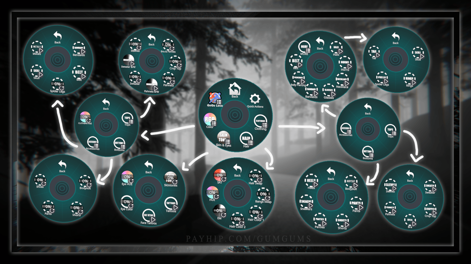 - Horns, Tail, Bandaids, Belt, Skull, Spider Legs, Necklaces, Rings, Glasses.