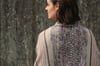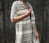 The sizing and yardage is based on working with fingering / 4-ply / sock weight yarns, as in the colourful sample, although the monochromatic sample substituted sport-weight yarn, resulting in a slightly larger version.