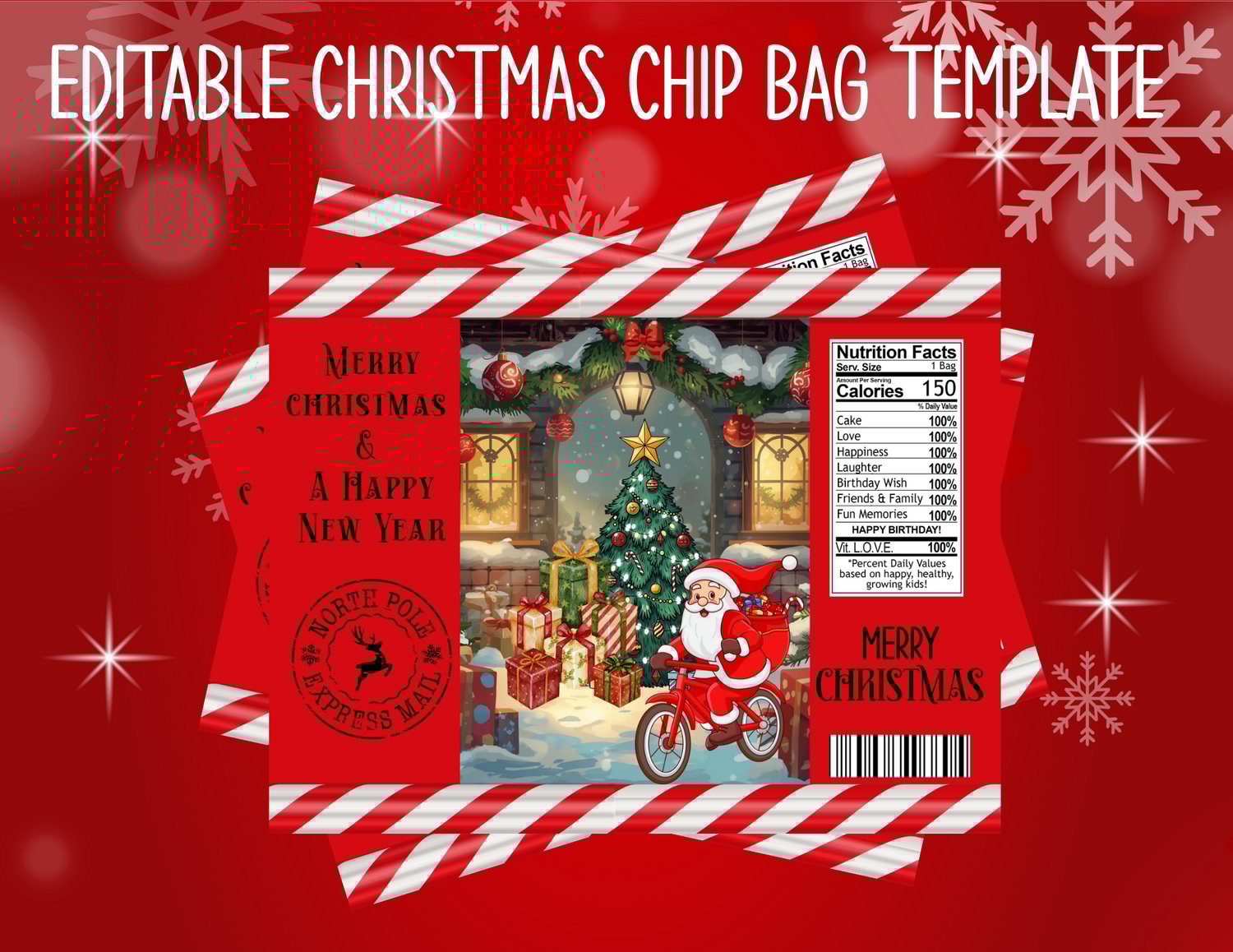 Make your holiday treats merry and bright with this Editable Christmas Chip Bag Template! 🎄✨