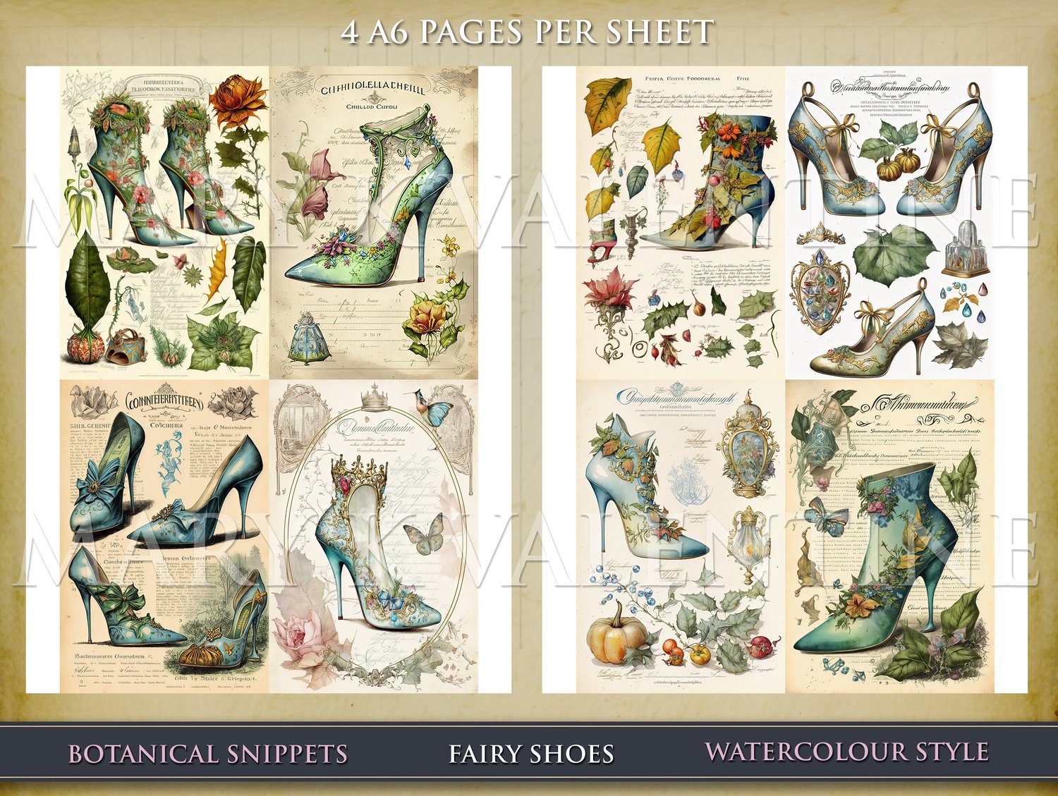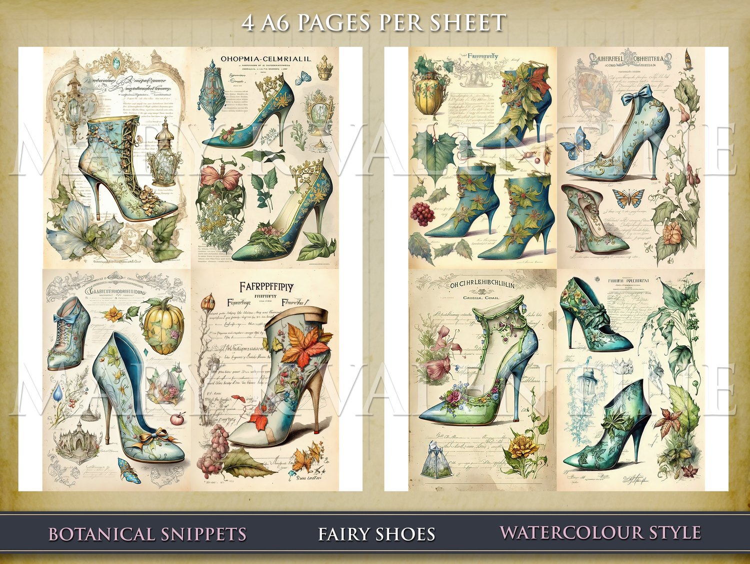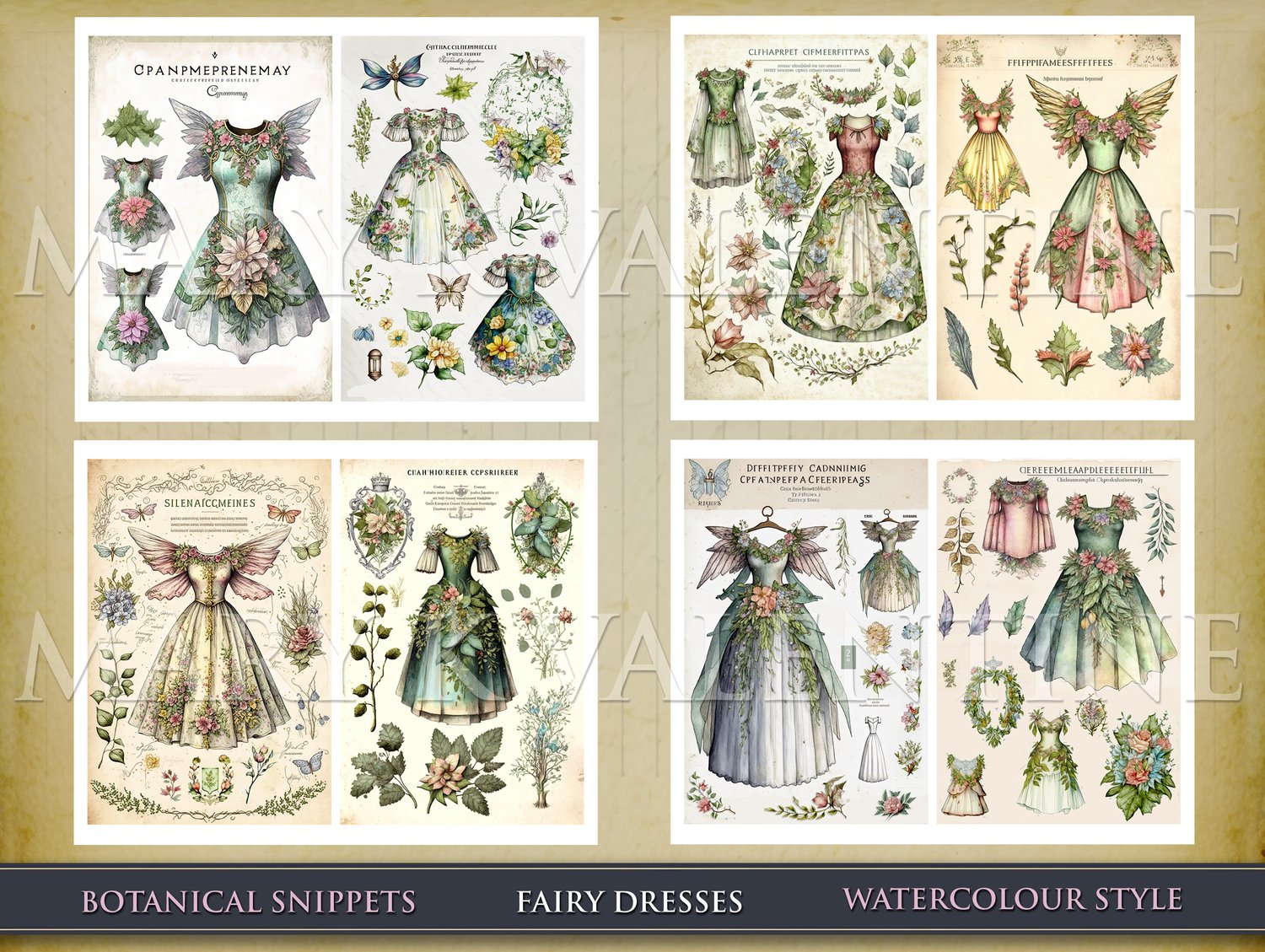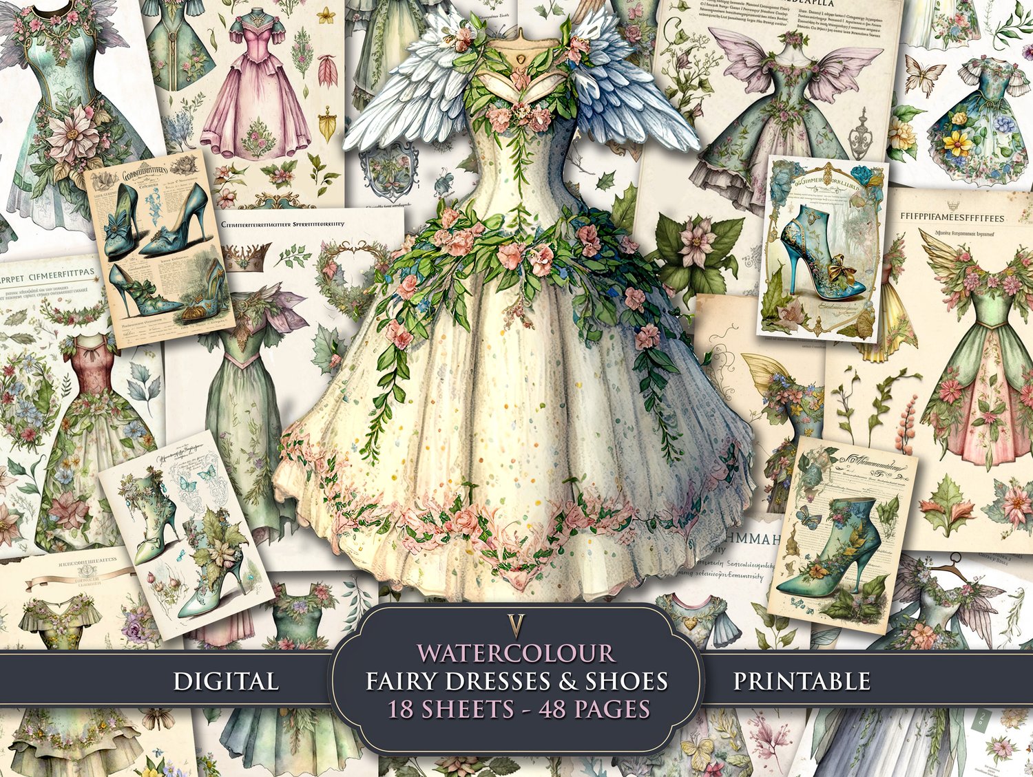 Watercolour Fairy Dresses and Shoes Junk Journal Printable pages
