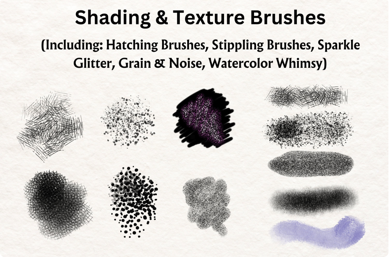 Stippling & Cross Hatching: Add depth and texture to your illustrations with stippling brushes that offer endless creative possibilities.