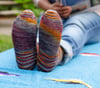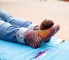 A fantastic gift and excellent treat for yourself. A great introduction to toe-up sock knitting, or just a gratifying quick knit. Really, what more do you want from your knitting? The Merino-Cashmere blend makes them extra warm and the nylon keeps them long-wearing. This pattern uses clever cast-ons and cast-offs, and features a gusseted heel for improved fit.