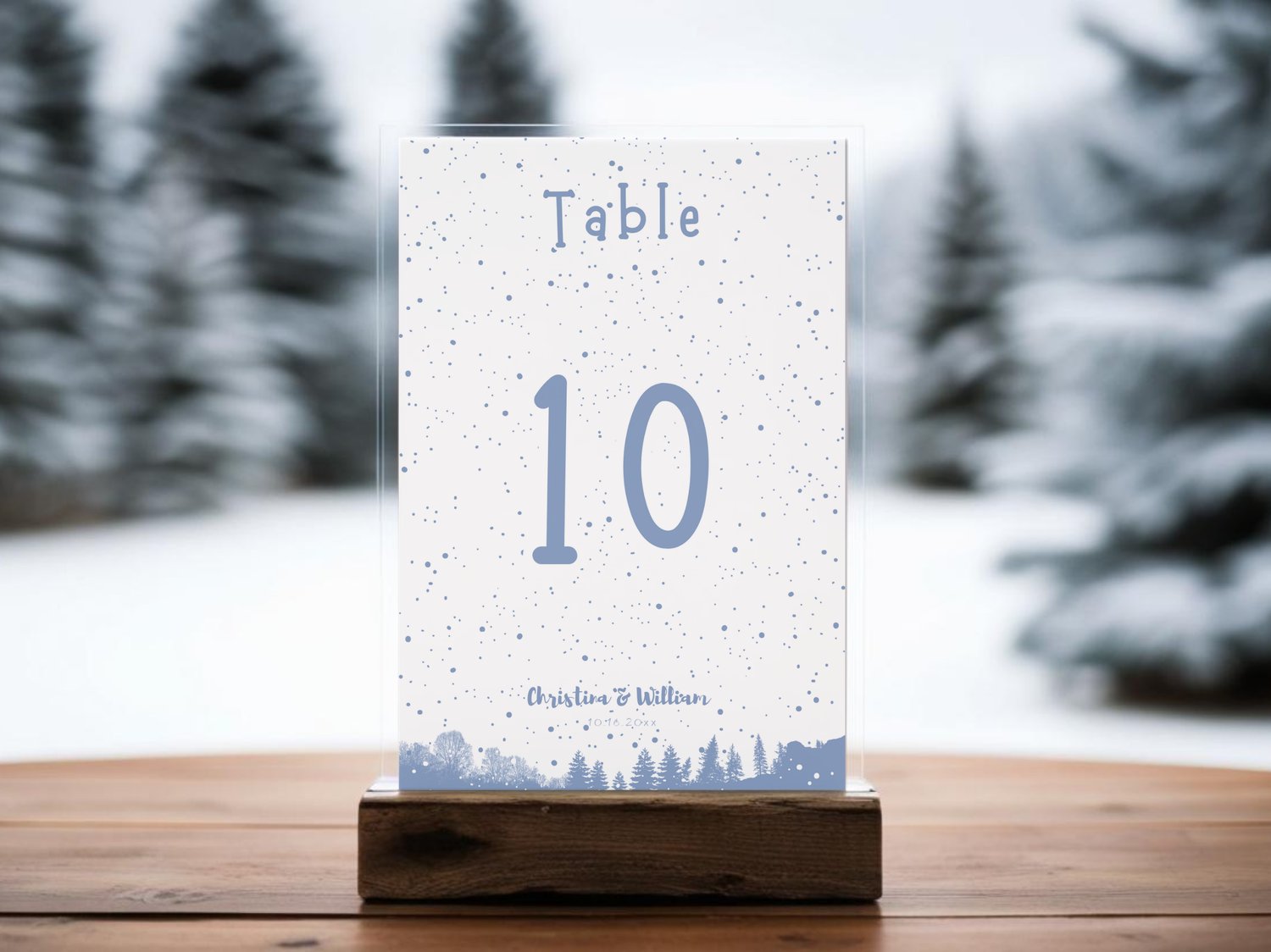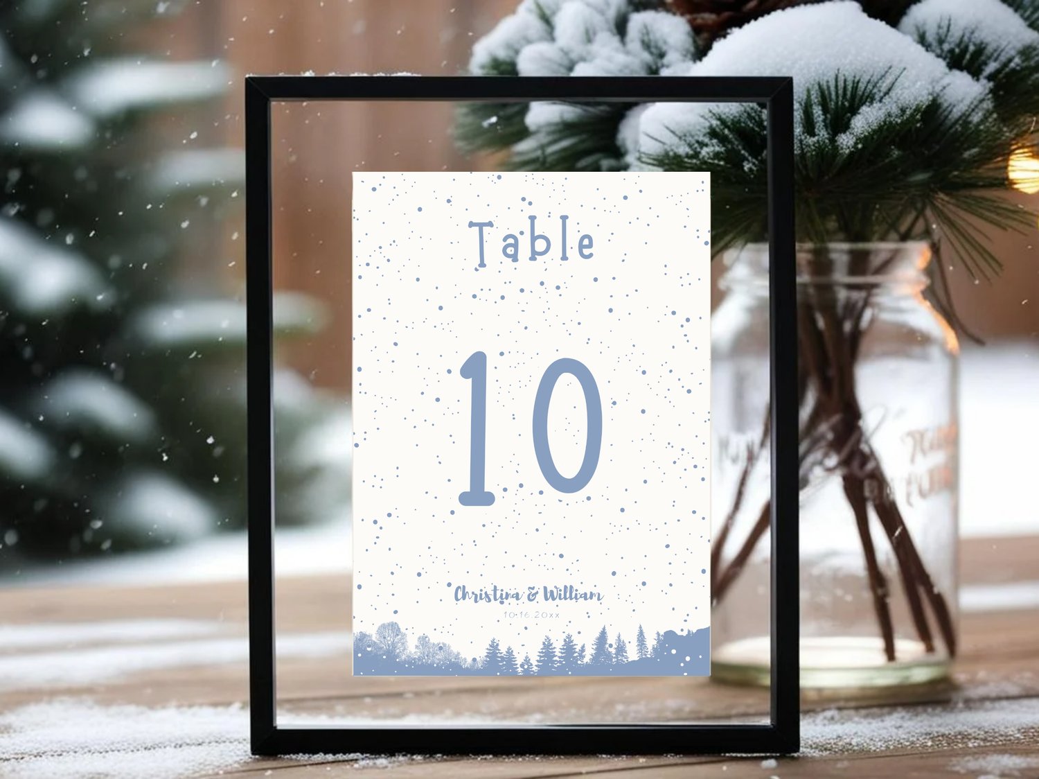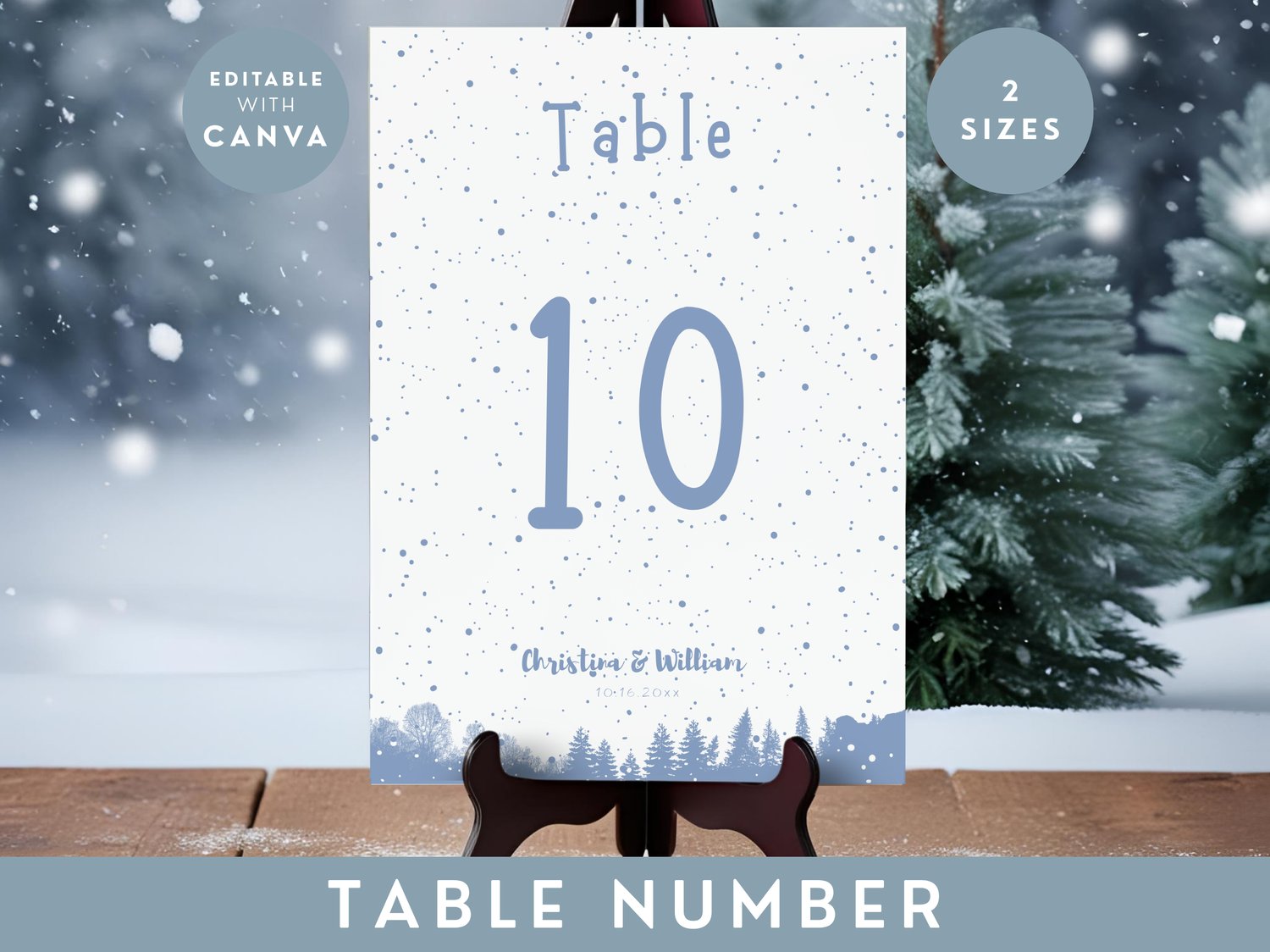 Winter Wedding Number Card Printable Reception Dinner Display Editable Numeric Design for Guest Seating Setting Seasonal Event Decor 006