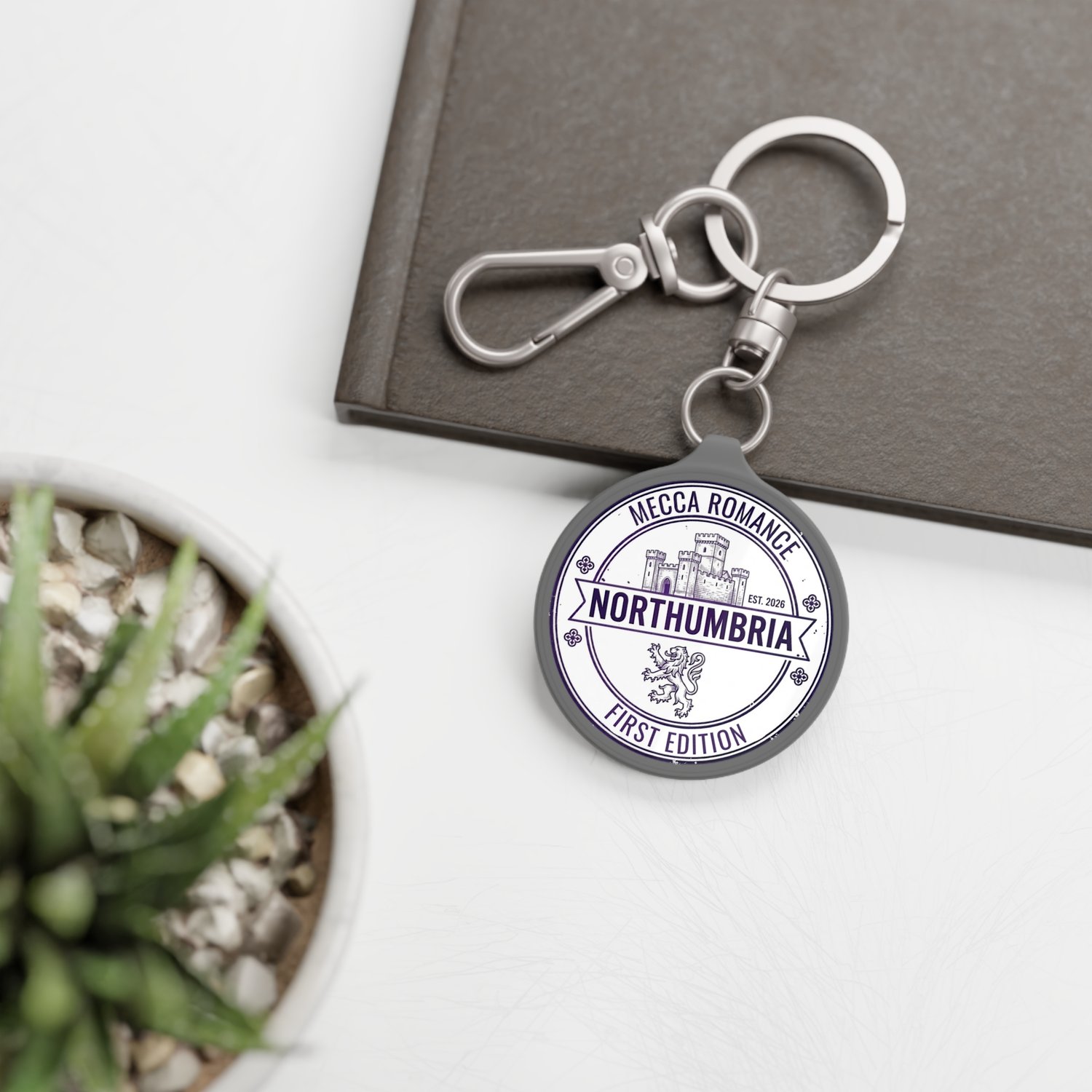 This one carries the Northumbria stamp in a clean matte print on round acrylic. It's lightweight enough that you'll forget it's there, and distinctive enough that people will ask about it.