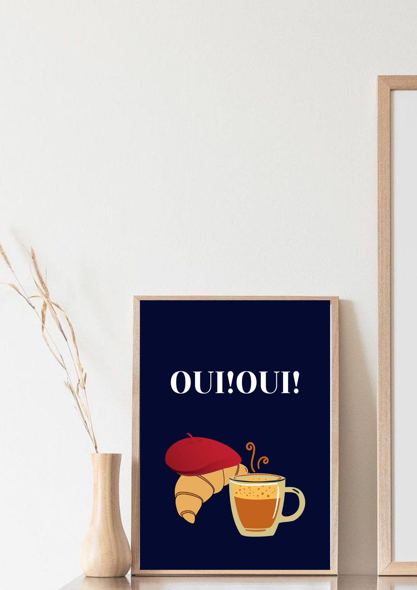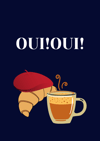 Coffee and croissant poster/ French coffee poster /Instant download poster / digital poster/ A3 poster/ Coffee poster titled "OUI!OUI!".