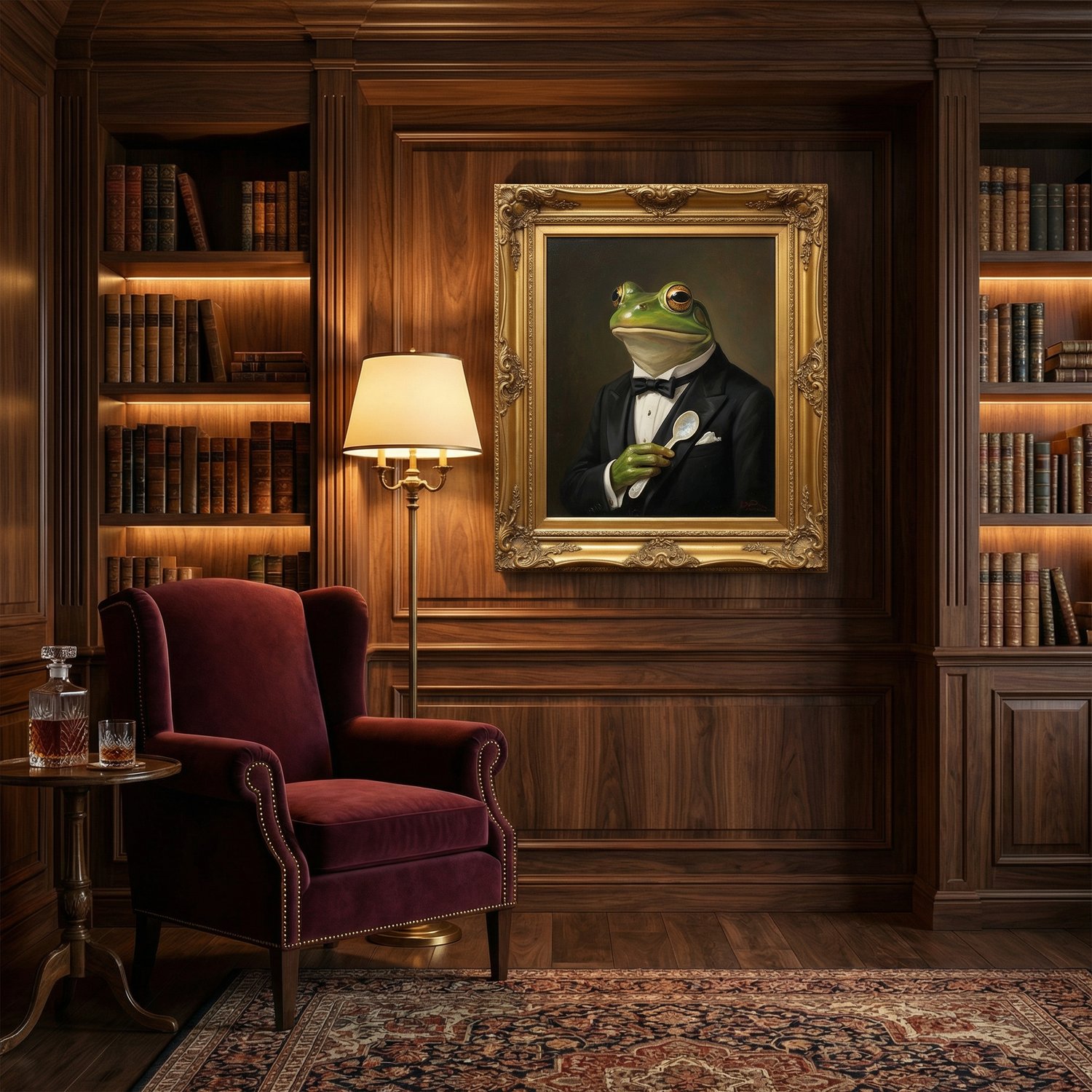 The Caviar Gentleman — Frog in Tuxedo Oil Painting Printable
