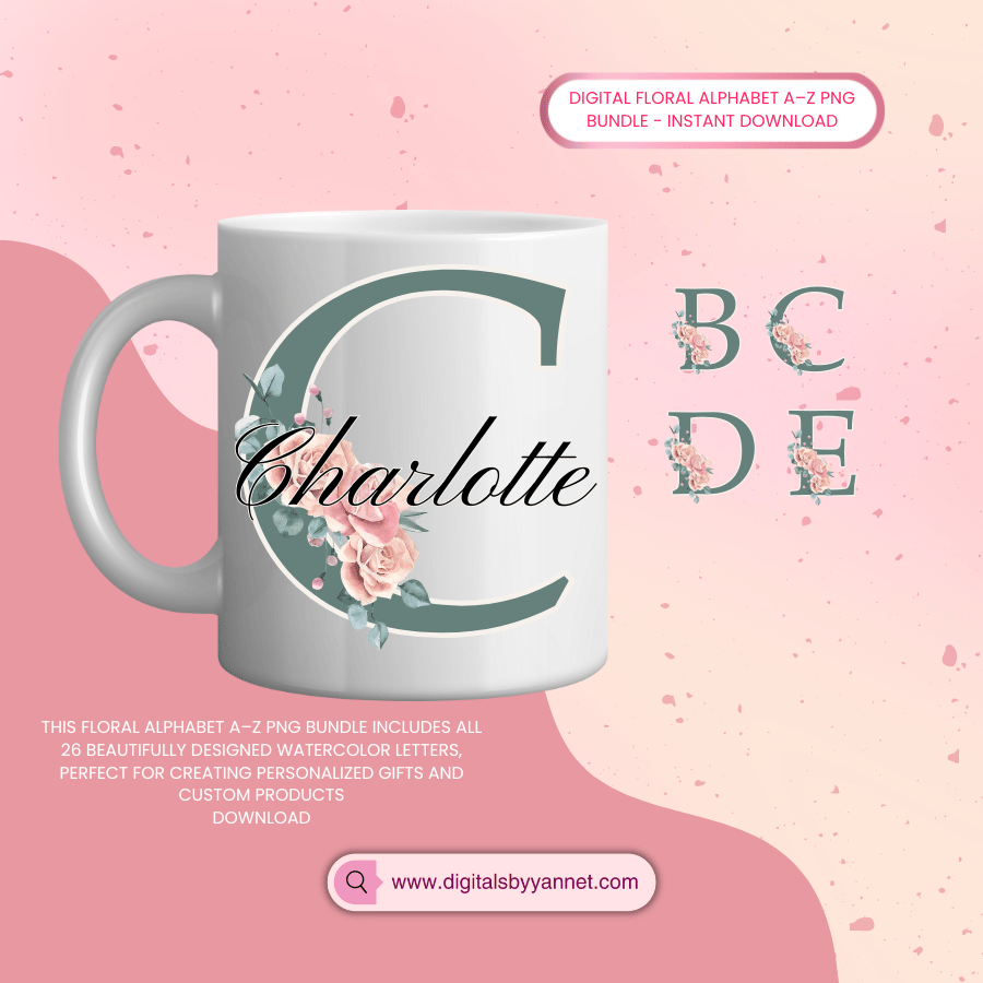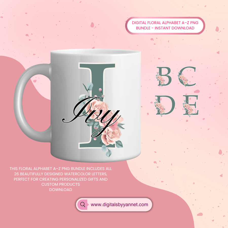 Floral Alphabet A–Z PNG Bundle | Watercolor Letter Initials | Sublimation & Personalized Gift Designs