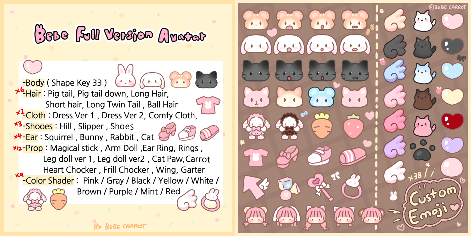 -Prop : Magical stick , Arm Doll , Leg doll x2 , Ear Ring, Rings , Heart Chocker , Frill Chocker , Wing, Garter , Cat Paw, Carrot Doll