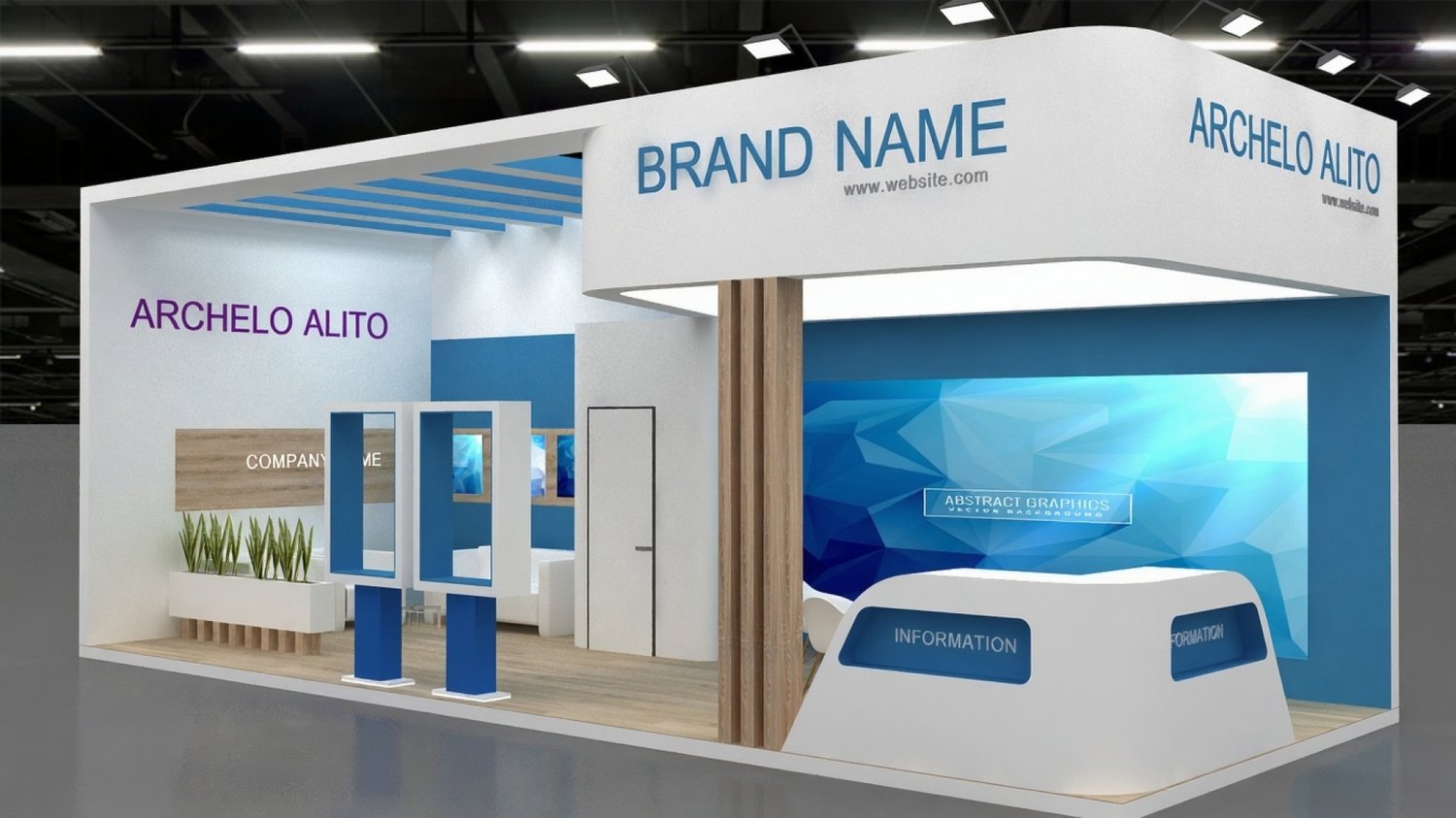 include design all necessary area in Exhibition and Booth Such as Vip and Storage and Counters and also Stand for products Format: 3DsMax (all version from 2016) / FBX /OBJ/GBL/Blender