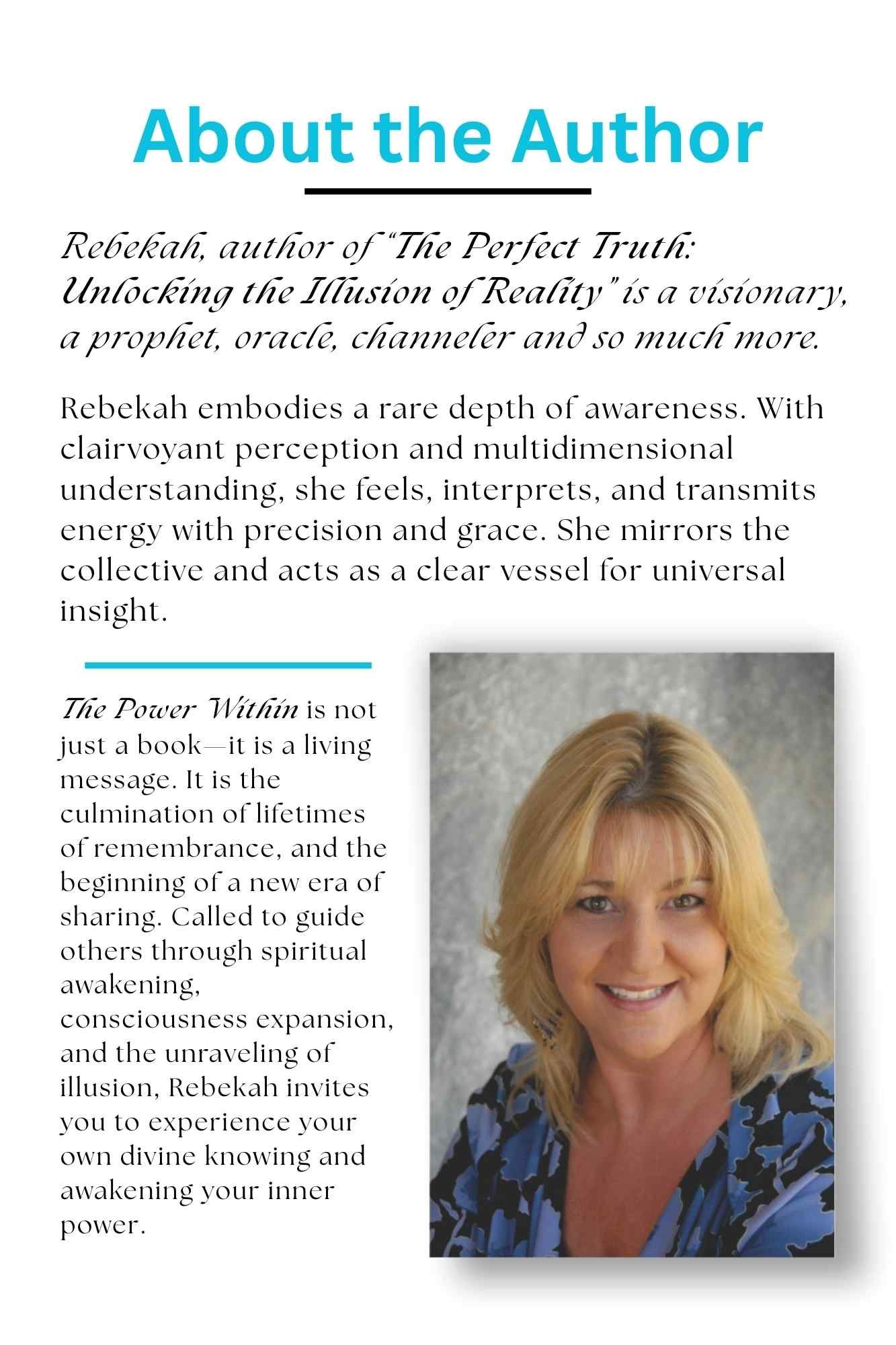 Rebekah is a visionary, spiritual guide, and intuitive channel with a lifetime of inner knowing and sacred silence. A recognized oracle, seer, and Human Design Reflector, she mirrors collective energy and transmits profound insight with clarity and grace. Her multidimensional awareness and personal journey make The Power Within a deeply authentic and transformational guide.