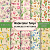 Watercolor Tulips Seamless Patterns
