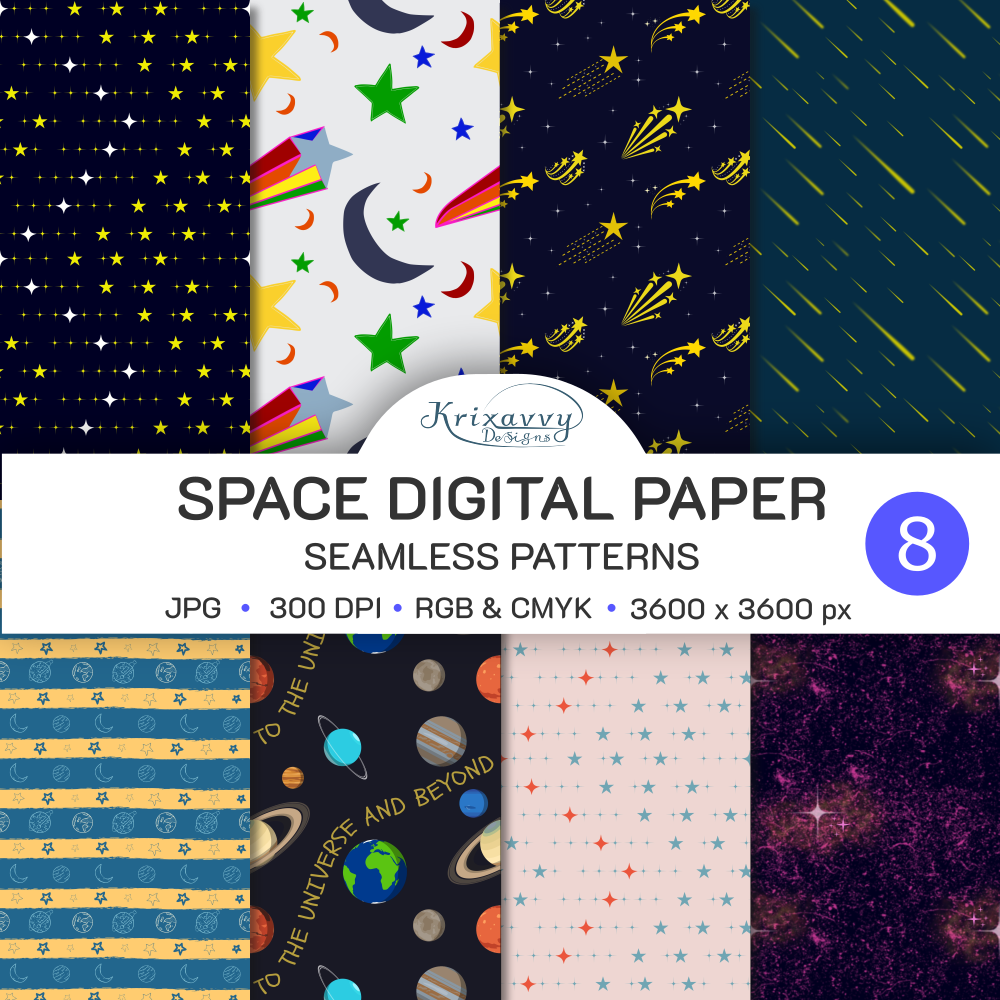 SPACE Digital Paper Seamless Pattern (Bundle of 8)