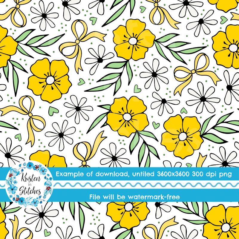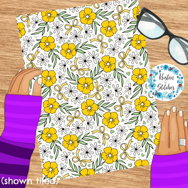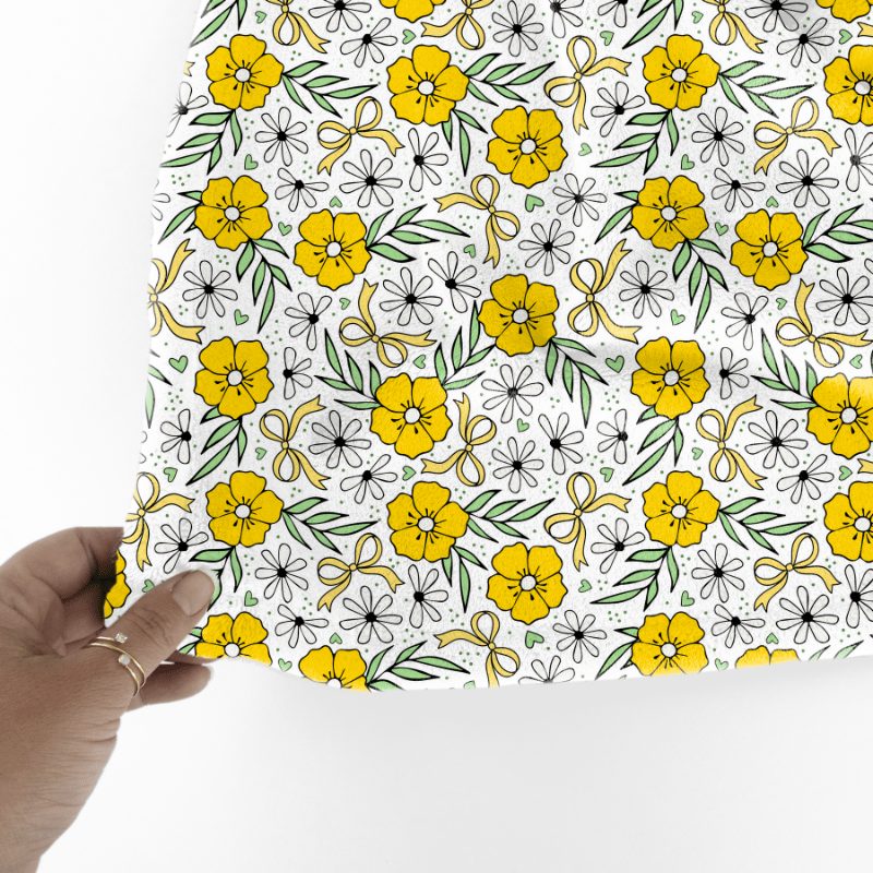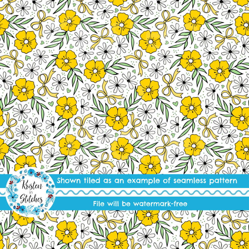 Coquette Wildflower Floral Seamless Pattern, Yellow Flower Blossoms