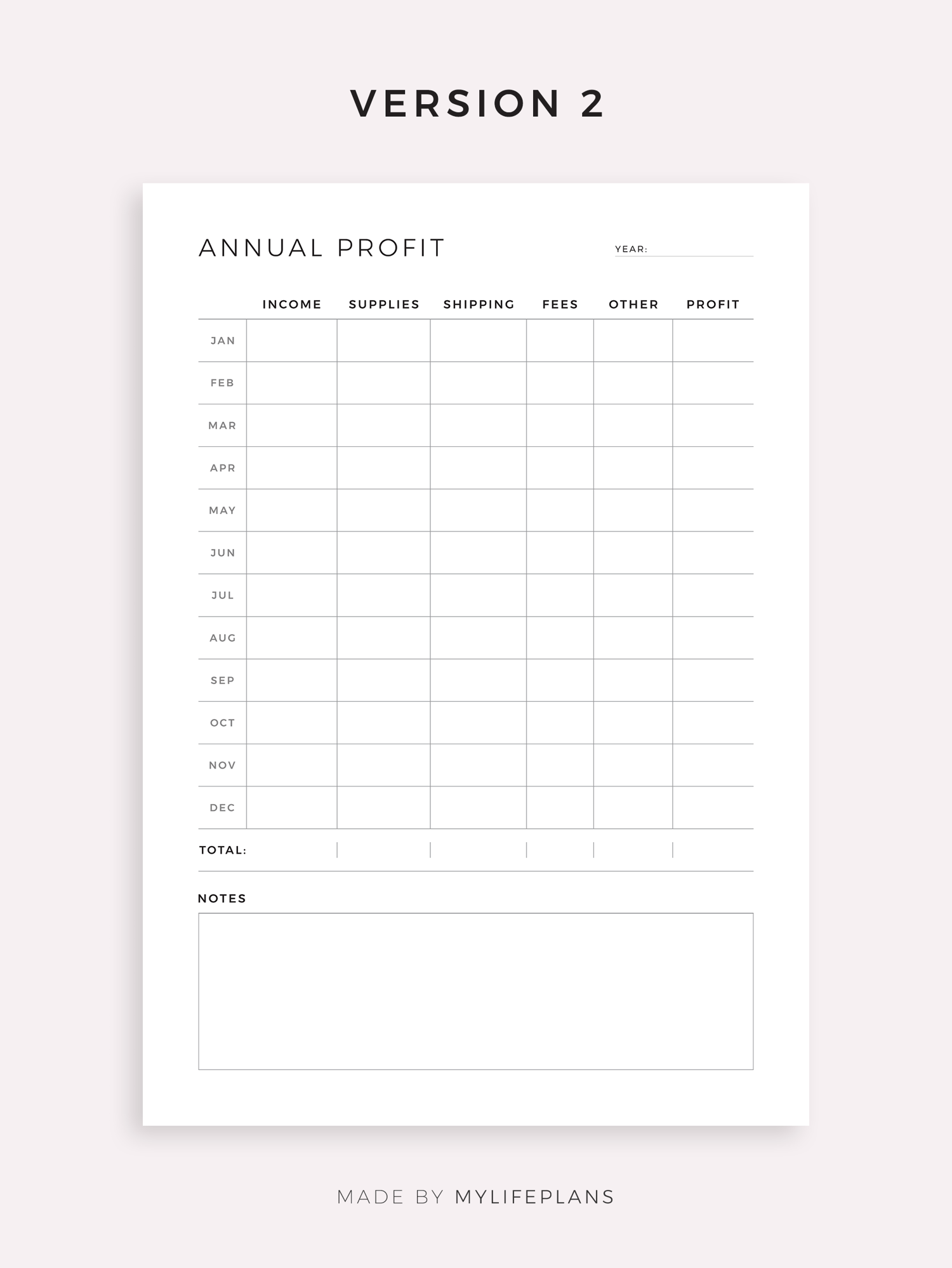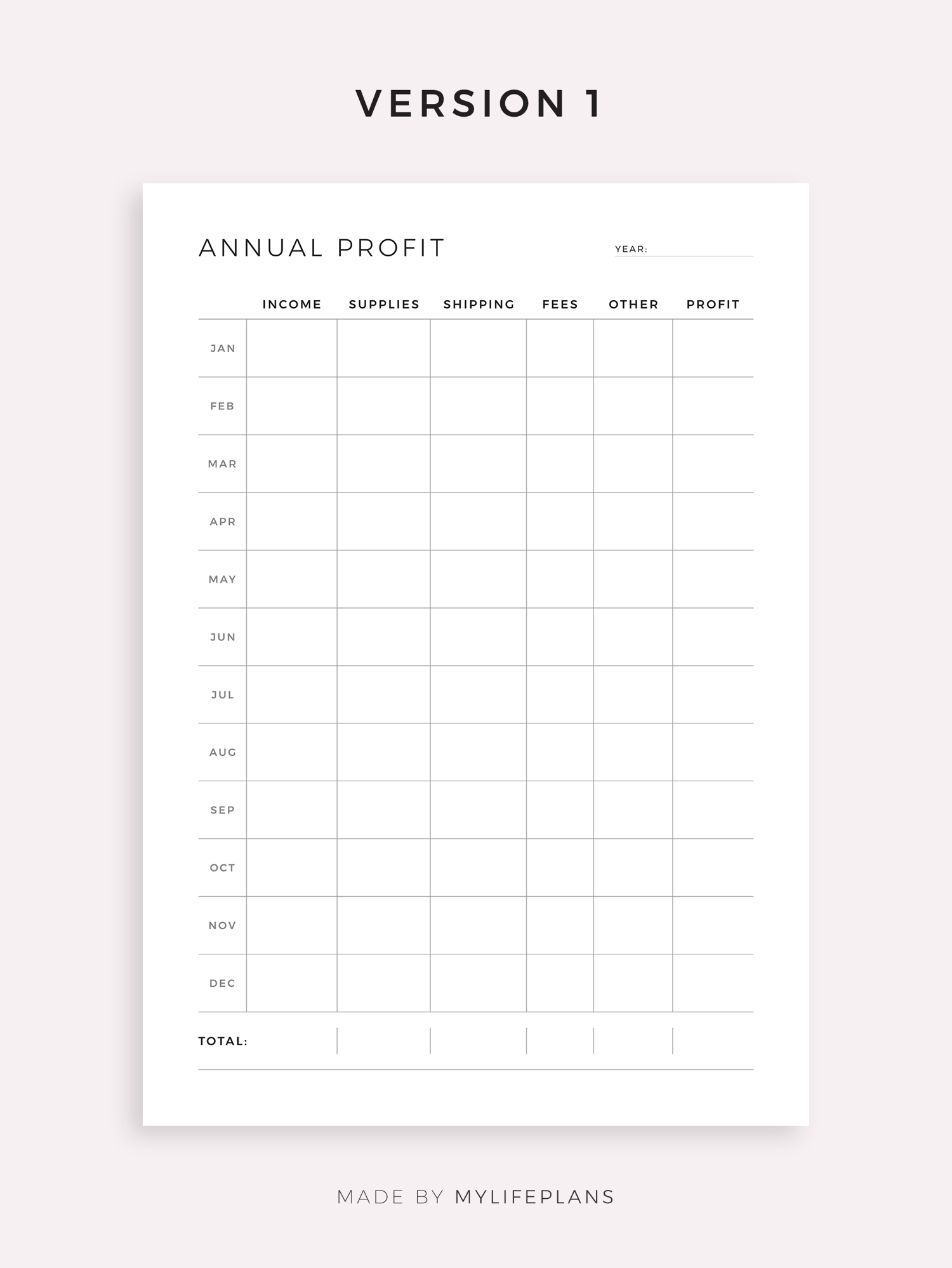 This is a printable annual profit tracker — just download, print, and start using it right away.
