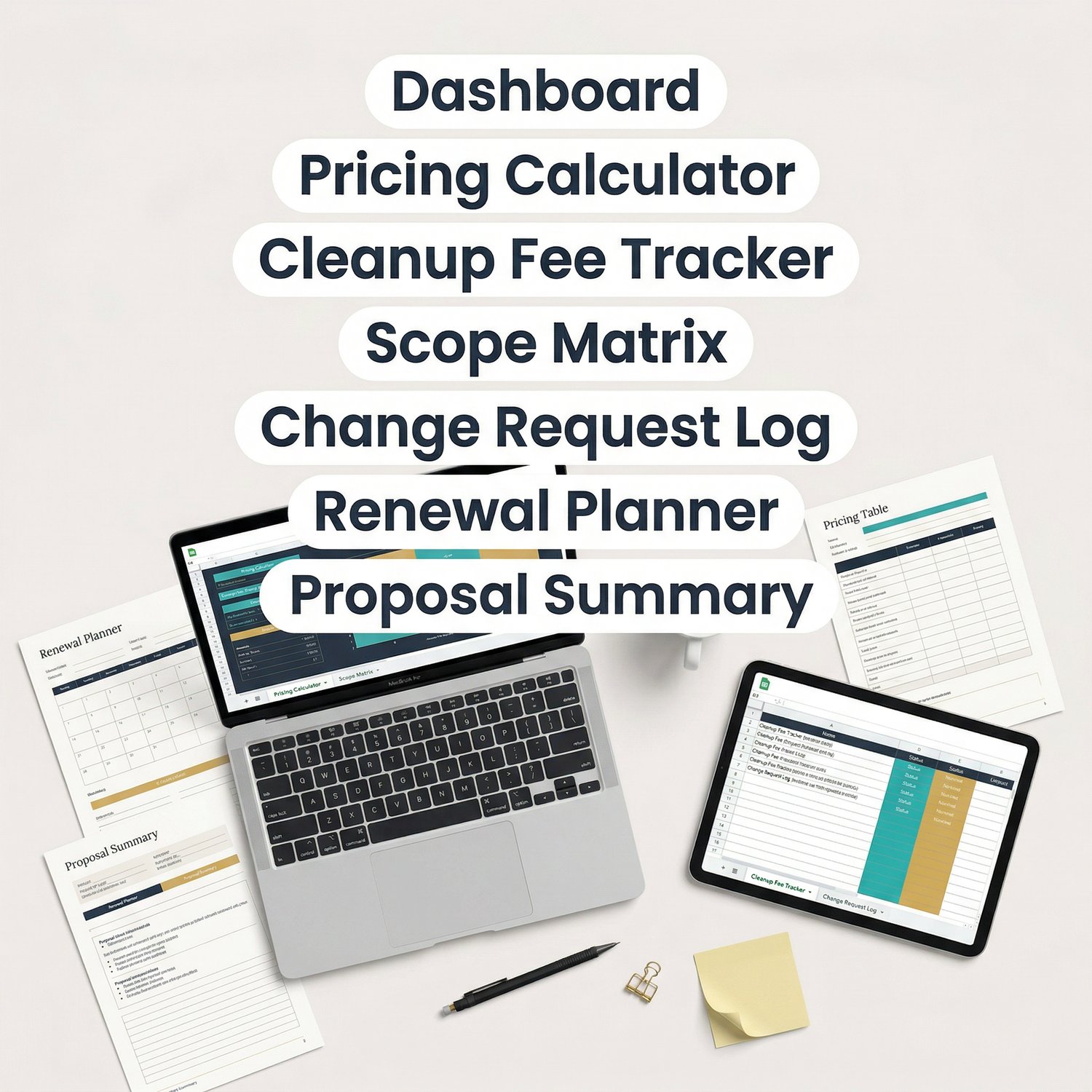 Inside this bundle, you get a fully editable Excel and Google Sheets workflow designed to help you evaluate client complexity, calculate recommended fees, separate included services from billable extras, document scope creep, and prepare cleaner pricing proposals.