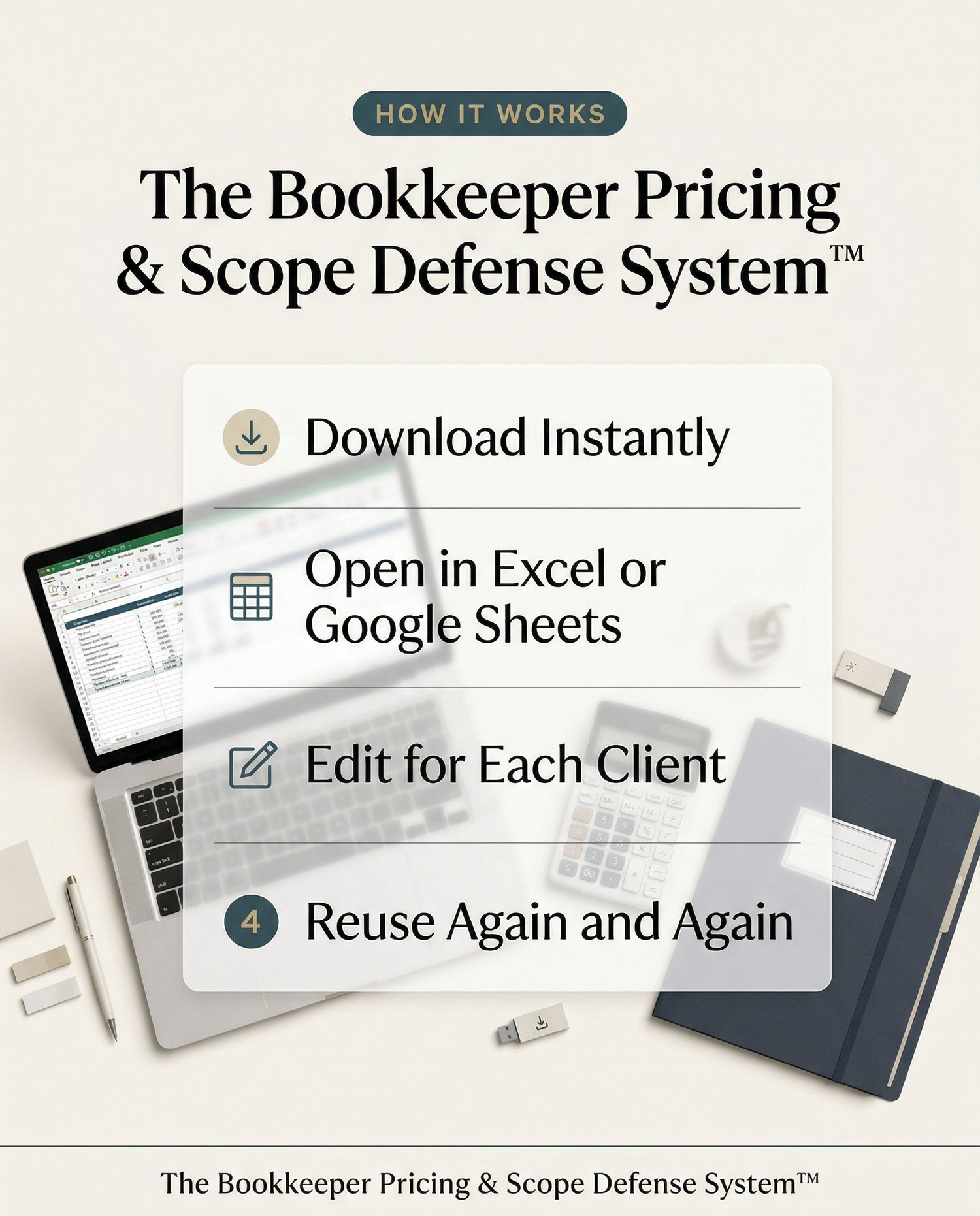 This premium operational system was built for bookkeepers, accountants, tax preparers, and cleanup specialists who need a structured way to calculate pricing, define scope, charge properly for historical cleanup work, handle change requests, and plan renewals without relying on guesswork.
