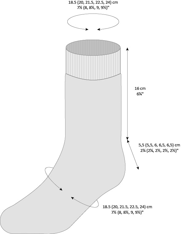 Leg/foot circumference in cm: 18.5, 20, 21.5, 22.5, 24