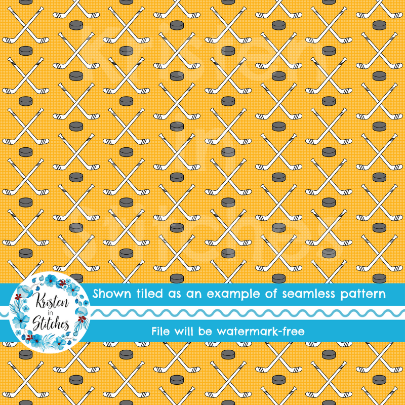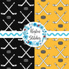 Team Spirit Hockey Sticks and Pucks Seamless Pattern Set, Boston Bruins Yellow Gold and Black