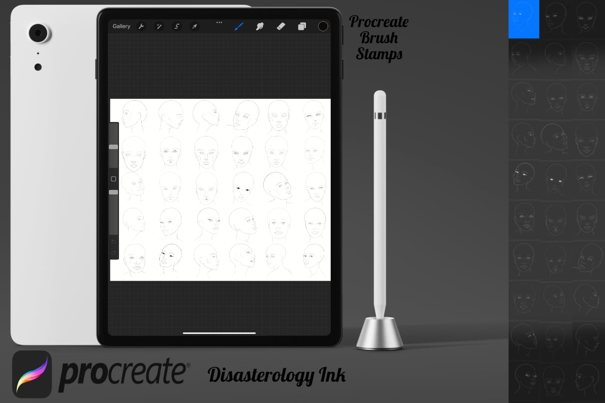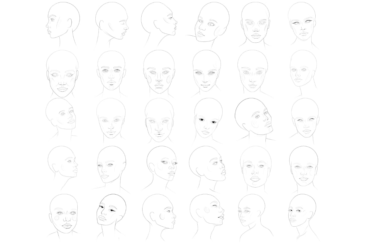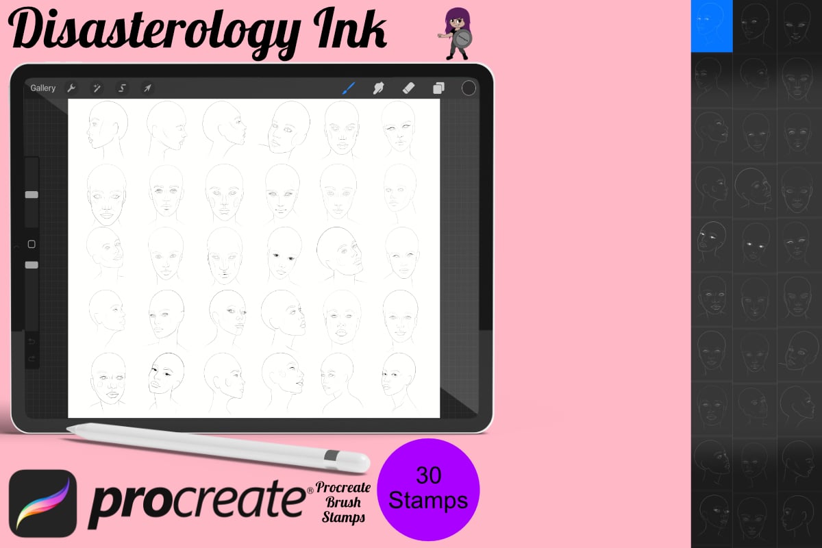 Female Human Face Set 3 Procreate Brush Stamps, 30 Faces