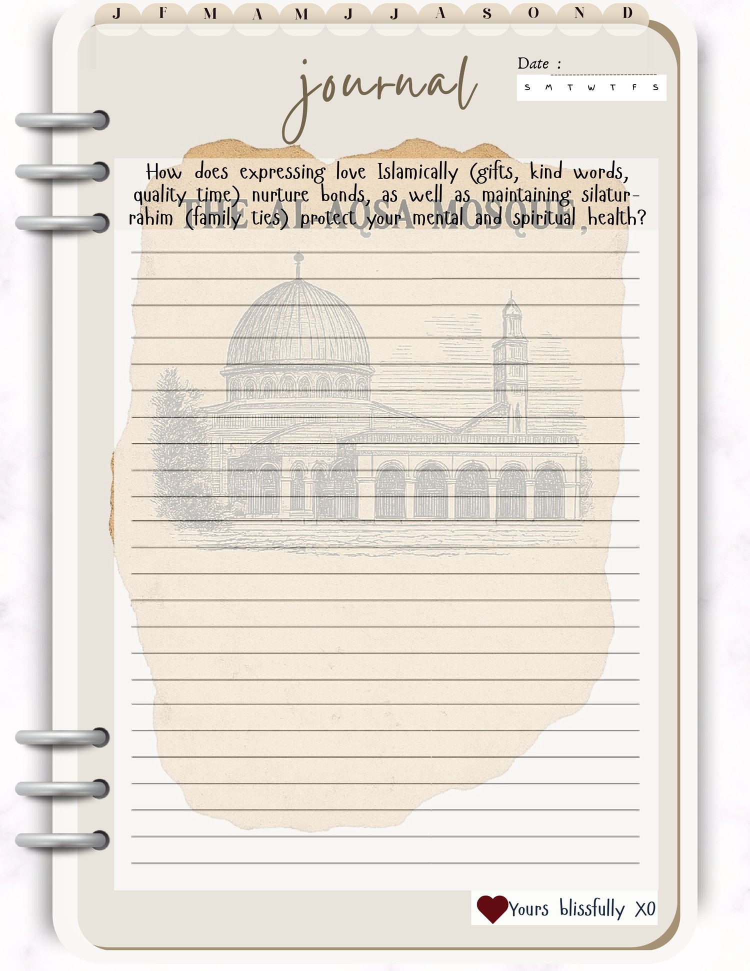 This Dated Mental Health Digital Islamic Journal 2026 is made of Daily reflection prompts based on Islamic teachings, Duas, and verses for comfort and strength, Mindfulness activities with an Islamic belief.