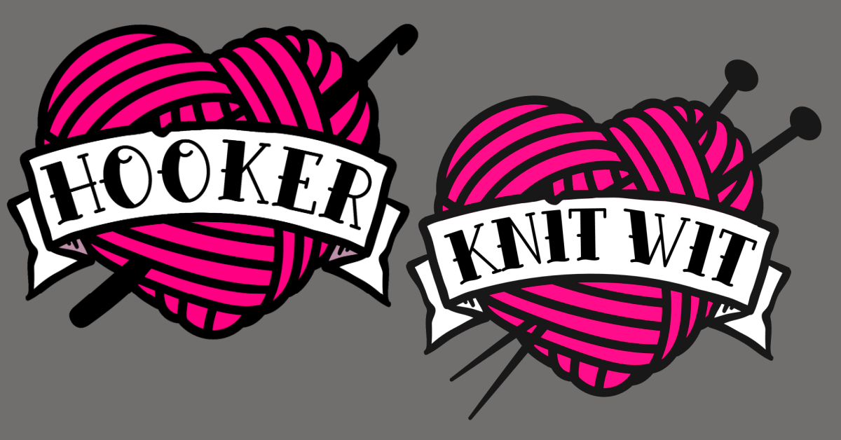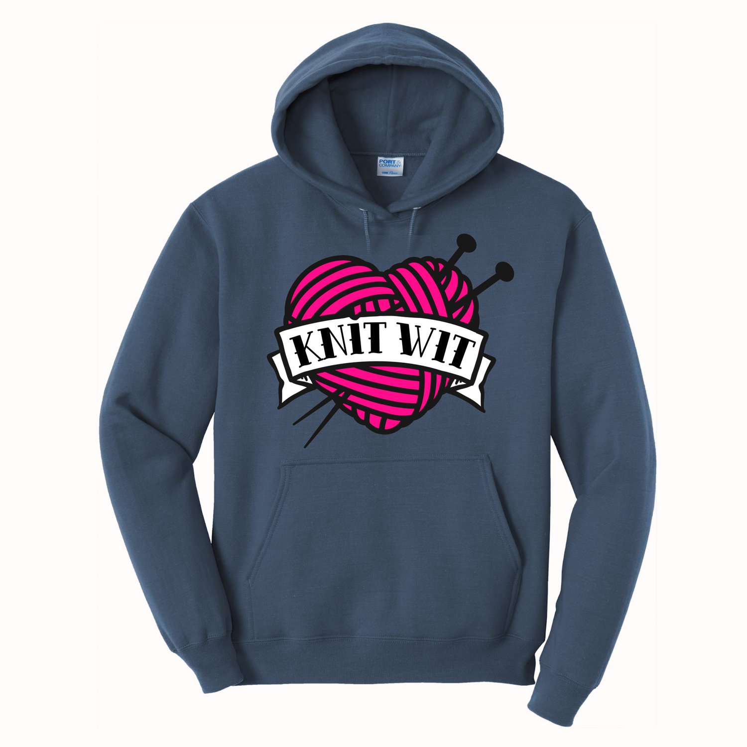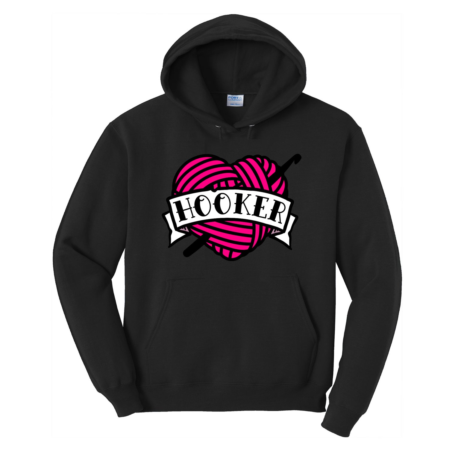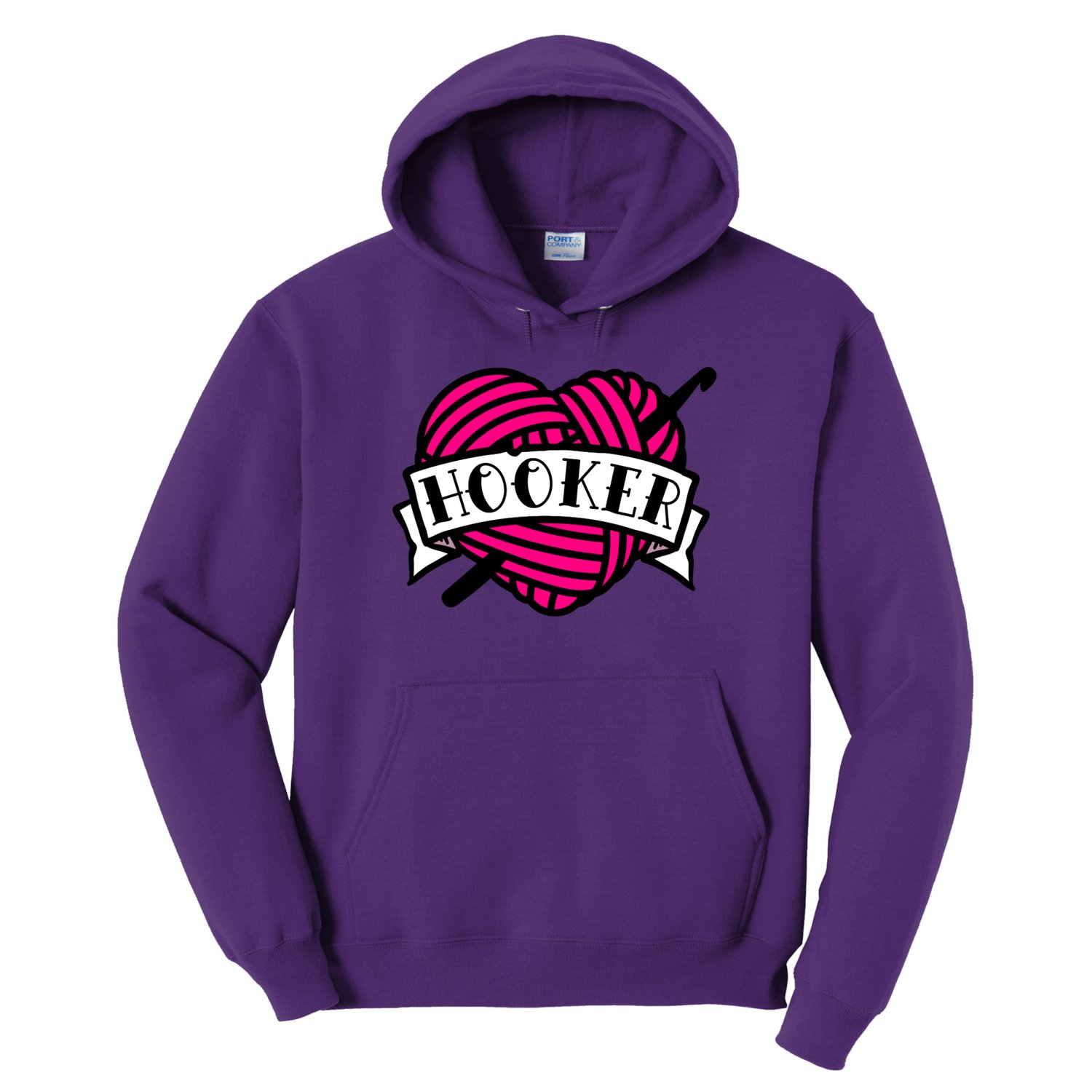 ✦ Funny Unisex Hooded Pullover with: "Hooker" Heart or "Knit Wit” Heart Tattoo style design