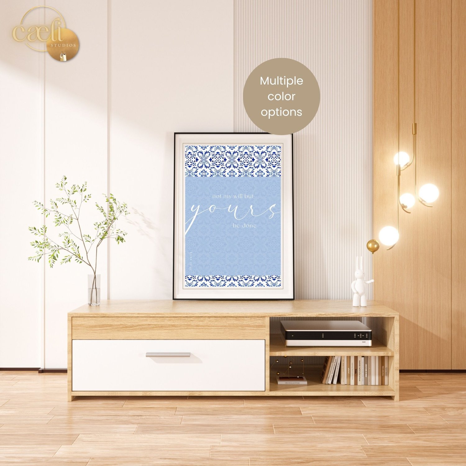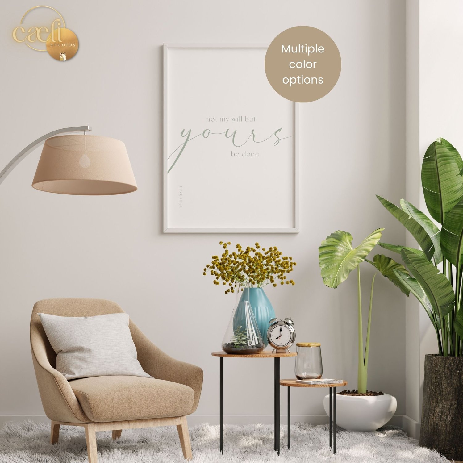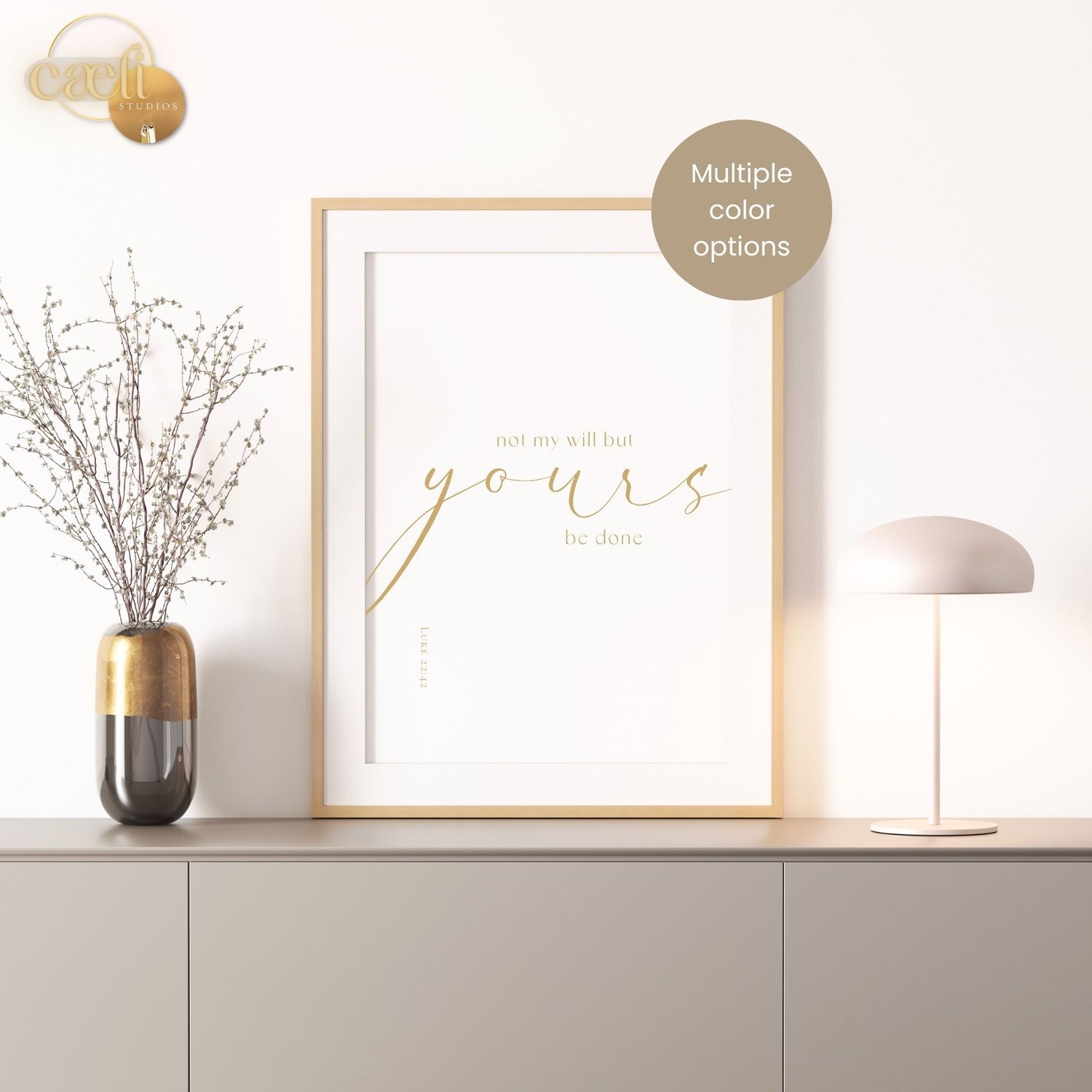 This digital download includes a Luke 22:42 Scripture verse printable wall art design perfect for a modern, minimalist or bohemian Christian home with 8 different color options.