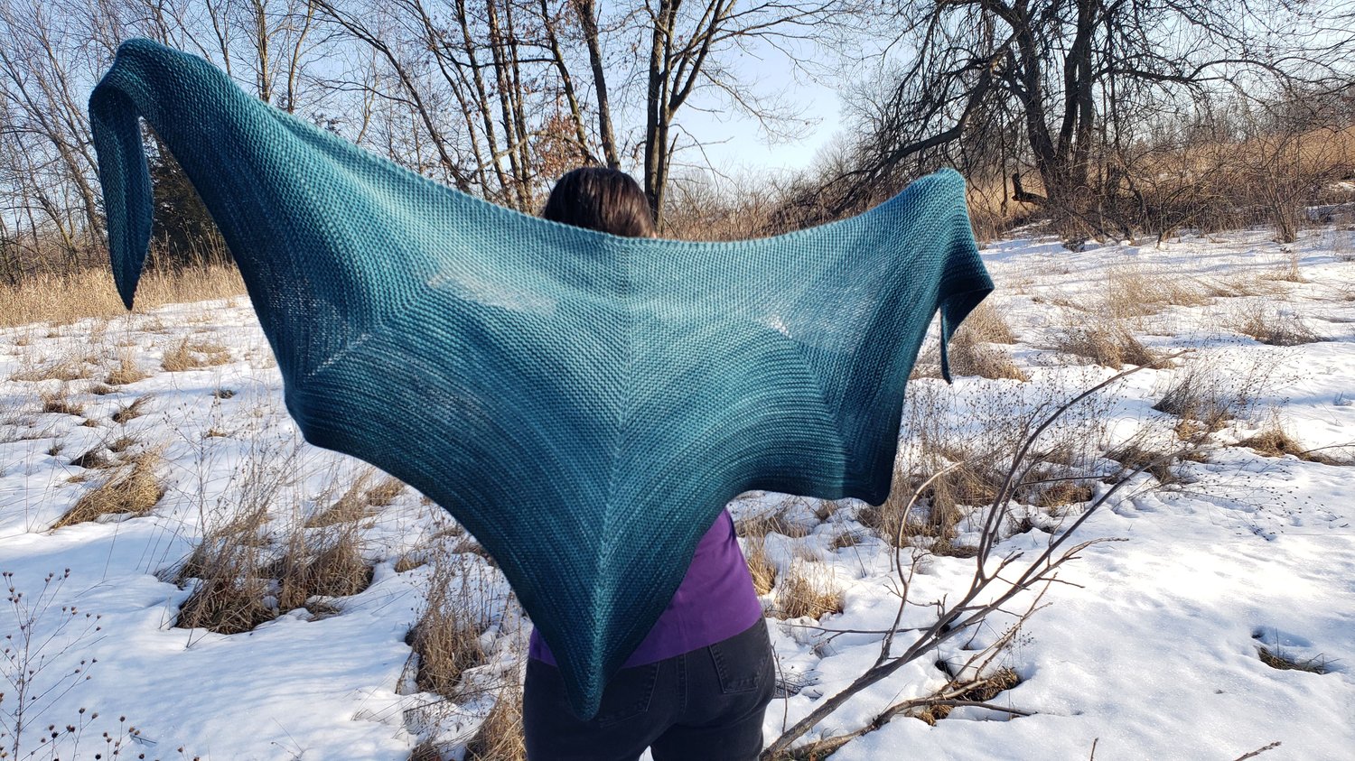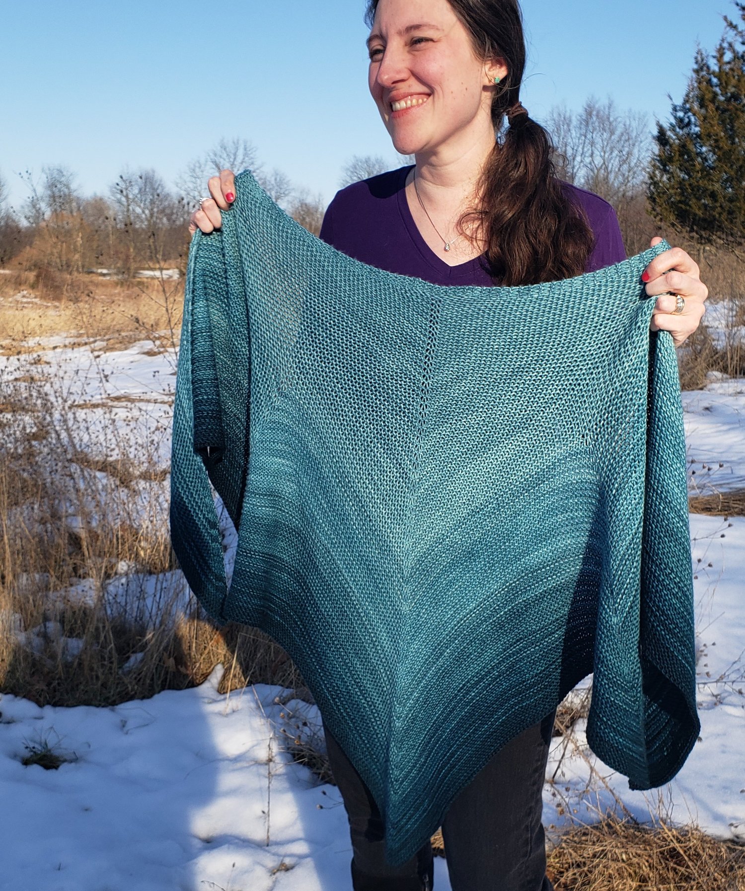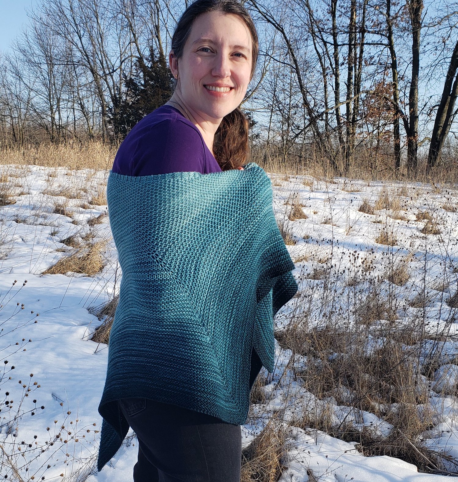 This shawl uses up to five yarn colors to create a gorgeous fade. Use a gradient set, or choose your own colors and create a unique fade! The interesting shape is created simply through additional increases, and makes a very wearable shawl, with extra warmth and coverage on your arms. Garter throughout makes for a fun, soothing, and squishy knit!