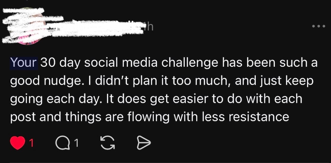 This 30-day posting challenge is designed to liberate your expression online—swiftly. I recommend it time & time again, and it consistently yields powerful results. If you complete this challenge, you will be freer by the end of it. I highly recommend everyone complete this challenge at least once in their life, and return to it whenever needed. Your purchase includes a transmission of the challenge, mindset tips, post tracker, journal prompts, inspiring quotes & more. May this set you free.