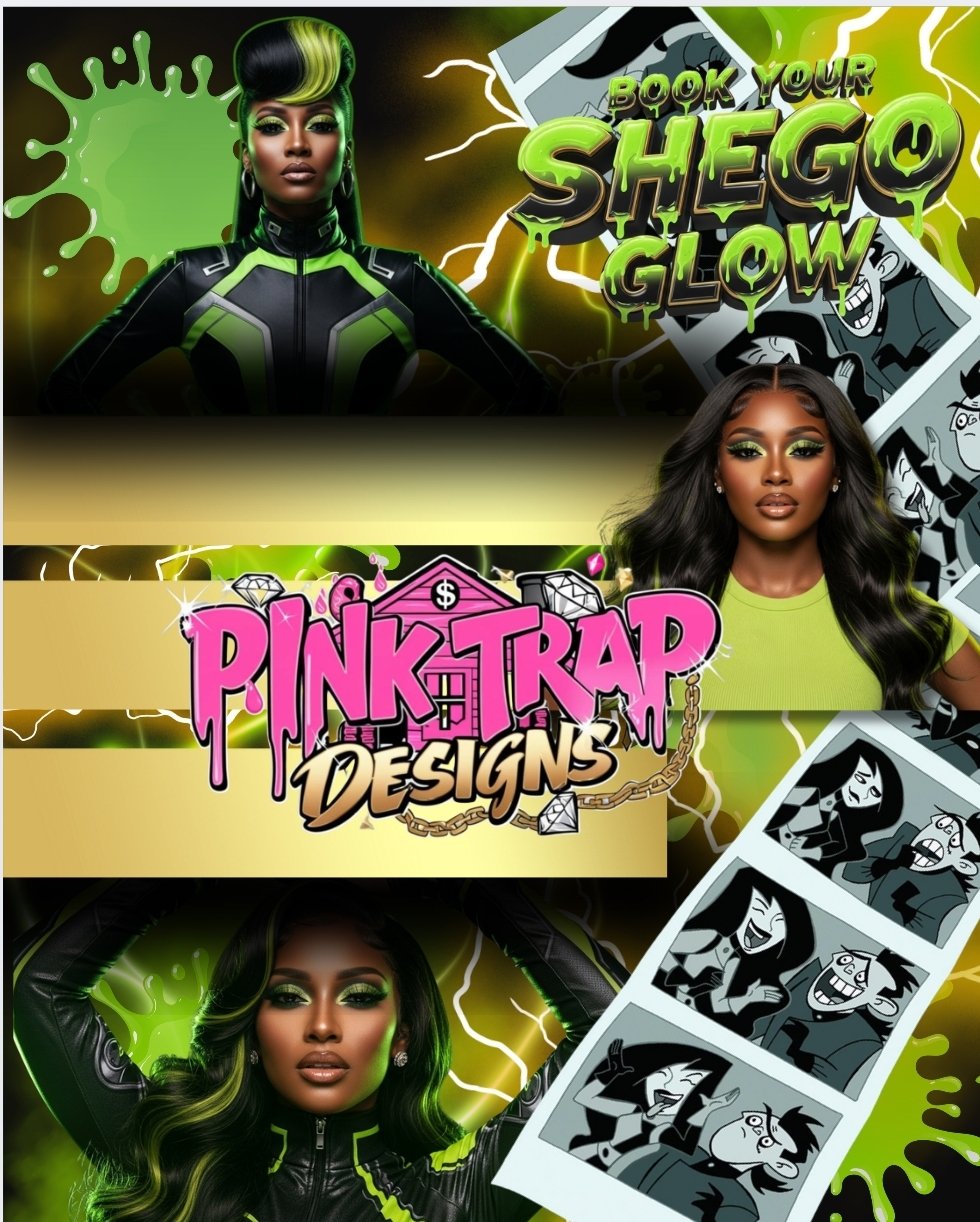 Turn heads with this Shego-inspired Hair Flyer — bold, fierce, and unapologetically confident. Designed to capture the “SheGirlKillPossible” energy, this editable Canva template features a powerful green-and-black aesthetic with luxe details that command attention. Perfect for hairstylists, wig makers, or beauty brands promoting green, neon, or bold transformations.