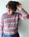 Coloris Contrastant 1 (CC1) : 1 (1 – 1 – 2) 2 (2 – 2 – 2) écheveau(x) de La Bien Aimée Confetti, ici dans le coloris Rose Éphémère, ou environ 180 (210 – 230 – 260) 300 (330 – 360 – 400) mètres.