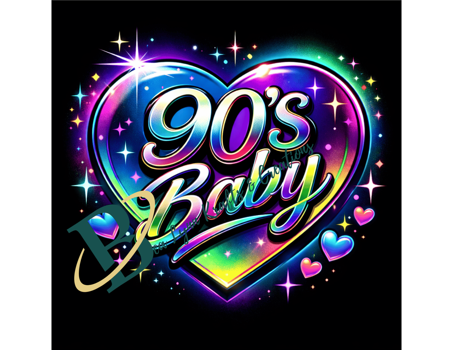 Celebrate the iconic 90s era with this bold 90’s Baby retro chrome heart design! Featuring vibrant neon colors, shiny chrome lettering, and playful retro sparkles inspired by classic 1990s style. Perfect for creating t-shirts, posters, banners, garden flags, party decorations, and birthday signs.