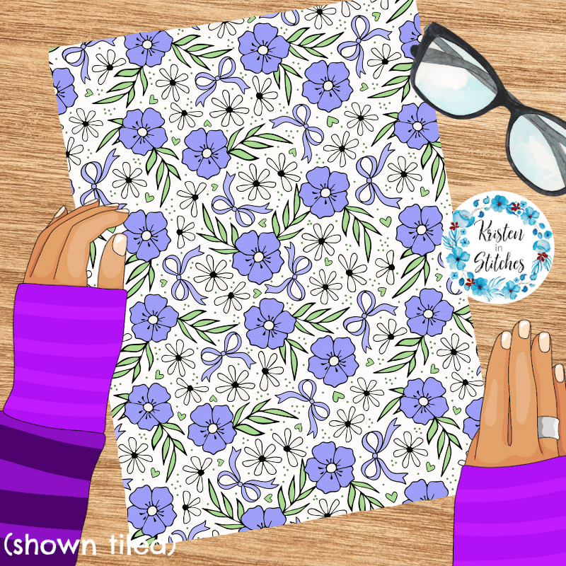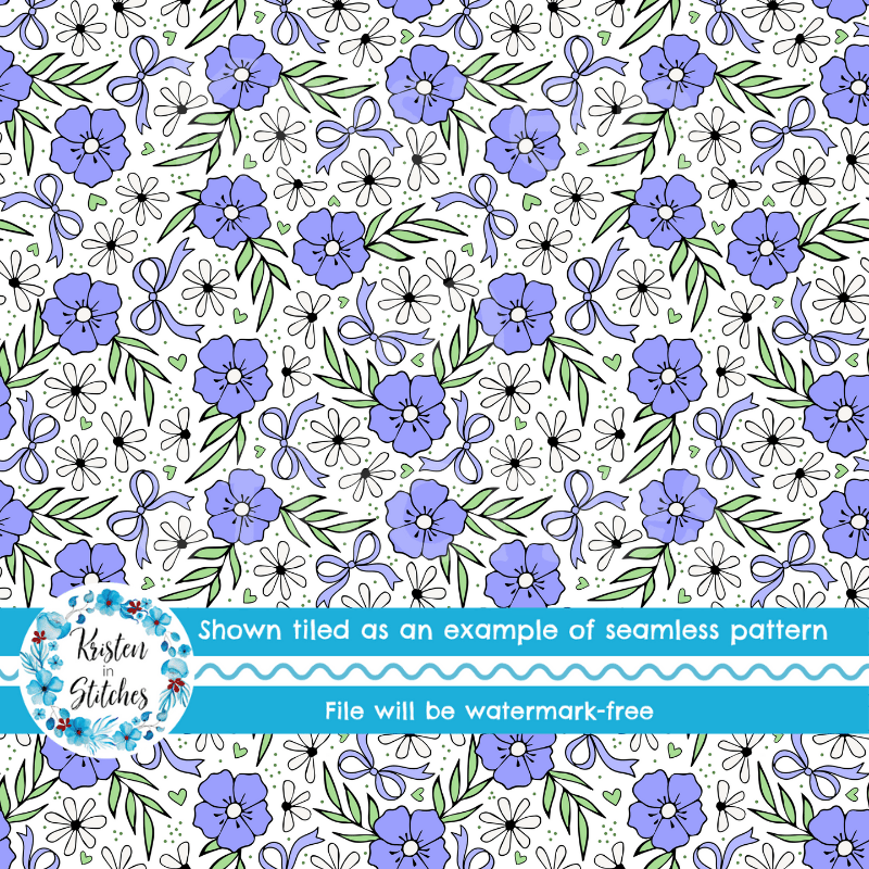 Coquette Wildflower Floral Seamless Pattern, Periwinkle Flower Blossoms