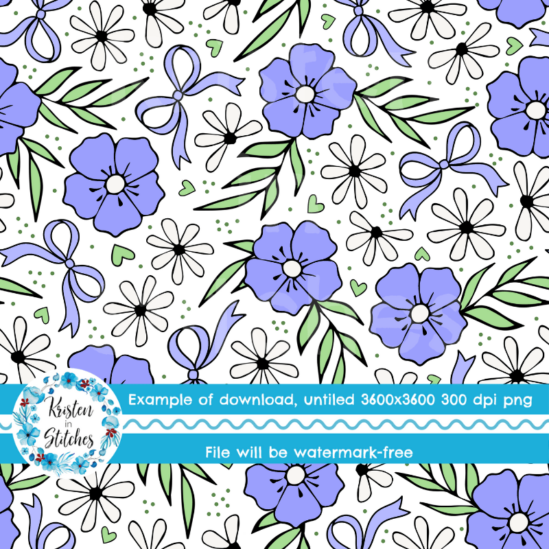Sweet cottagecore floral with bows, hearts and daisy flowers.
