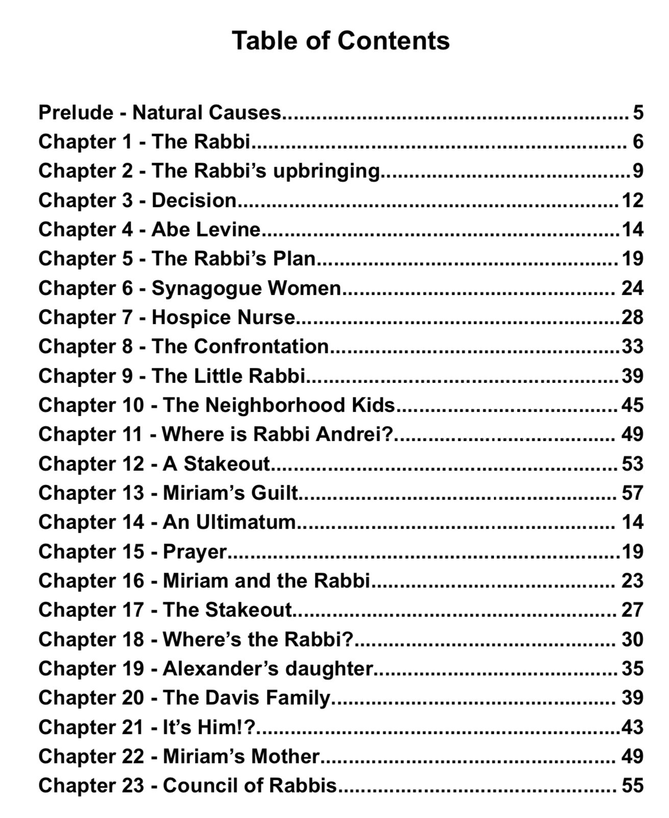 A tenacious Jewish Rabbi, who is well connected and respected, uncovers a plot amongst those in the area of his synagogue in downtown San Diego.