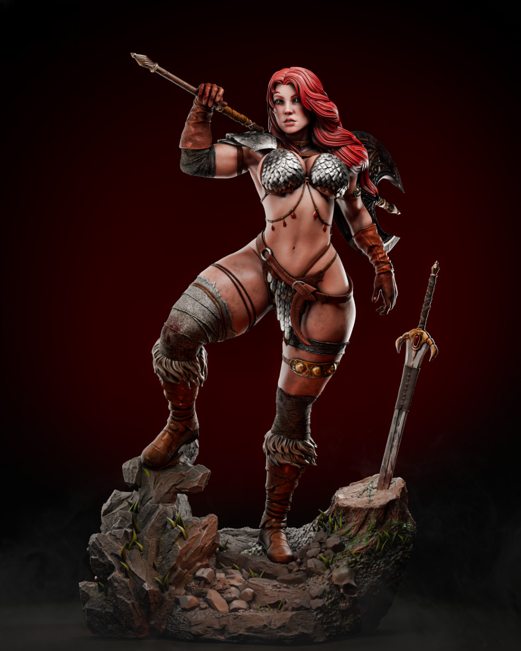 Download premium Red Sonja STL 3D print files, inspired by the legendary sword-wielding heroine from fantasy comics.