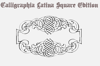 Introducing Calligraphia Latina Square Edition - an impressive dingbat font presented by Intellecta Design. This exceptional typeface, steeped in neoclassic eloquence, weaves intricate penmanship frames into its design, enhancing the aesthetic appeal and inviting admiration. Tracing its roots back to the timeless elegance of calligraphy, this uniquely crafted font breathes an air of sophistication into every usage. Experience the visual journey with the Calligraphia Latina Square Edition.
