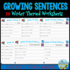 Help your students build stronger sentences with this Winter-themed Growing Sentences pack! Designed for grade 2 and up, this set includes 30 worksheets featuring simple Winter-themed base sentences like “Snowflakes fall” or “Friends exchange gifts.” Each worksheet guides students through five steps to add adjectives, adverbs, descriptive phrases, and reasons or causes, encouraging them to turn a basic sentence into a rich, detailed one. This structured approach to sentence expansion is ideal for developing writing skills and building confidence. These worksheets make it easy to teach sentence structure, descriptive language, and writing fluency. With a clear and consistent format, students can gradually build their sentences, learning how to express ideas more fully while staying on topic.