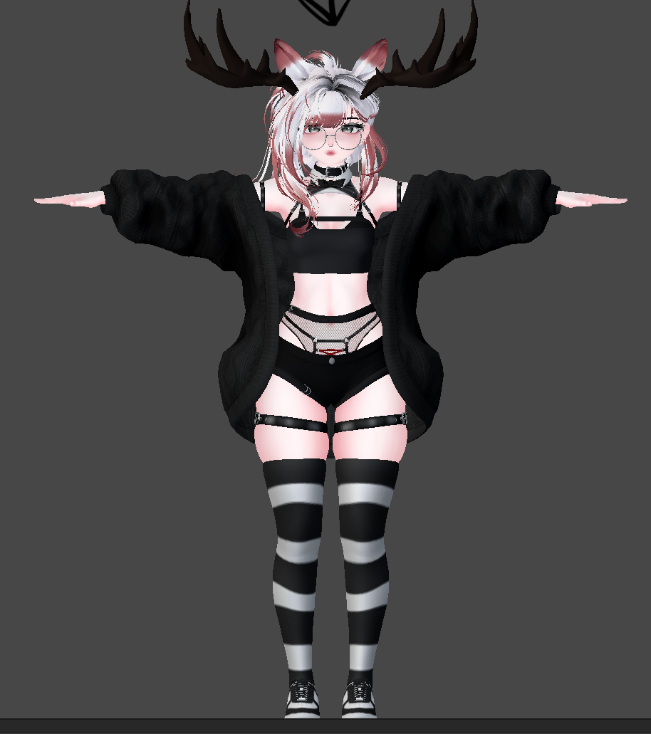 | armcuffs, garters, top harness, wrist cuffs | collar, bra | harness | socks | stockings | thigh highs | Ears | eye texture | candy cane | body | body texture | sleeves | fishnets | jeans | shorts | straight bangs | messy bangs | bun | braids | bob | short hair | cat ears and tail | rabbit ears and tail | wolf tail | boots | heels | sneakers | slippers | cardigan | sweater | tank, skirt | tube top | panties | lolipop | PCS | Limb Scaling | Hair Textures | toggles creator | advanced gestures | Bodysuit, crop, antlers, moose ears, moose tail, head by me |