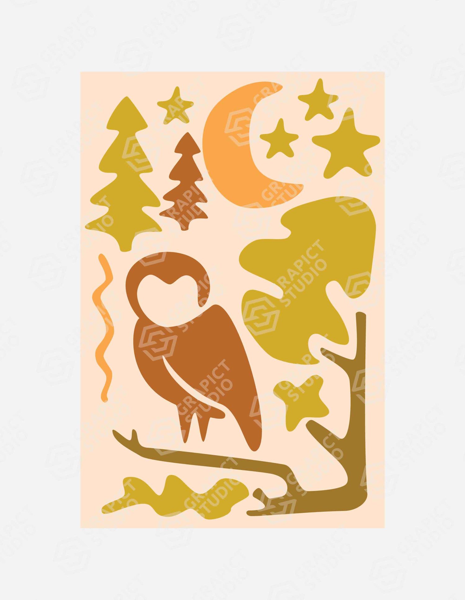 Owl Illustration Matisse inspired design, suitable for cards or social media post. Owl shapes Matisse inspired suitable for art decoration, wall printing, or fabric print.